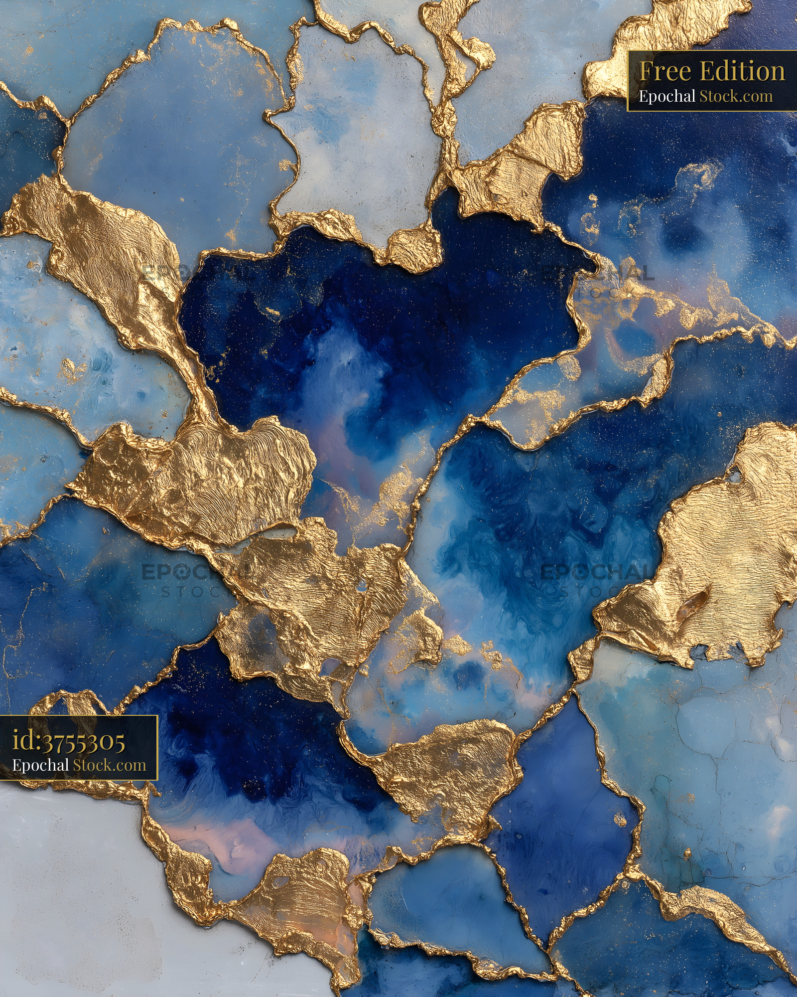 Abstract painting of blue and gold shapes on canvas Free Premium Stock Photo