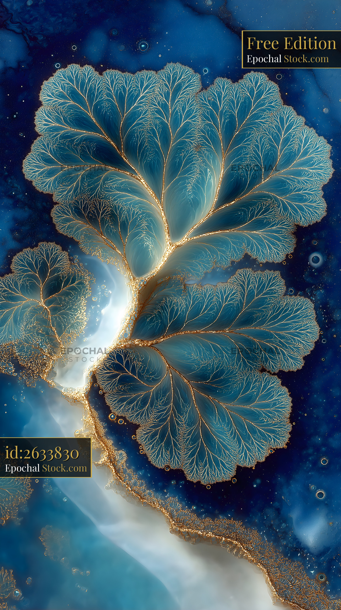A blue backdrop with gold lines branching like leaves. The shapes create a fluid pattern that draws the eye. The design resembles natural forms found in nature.