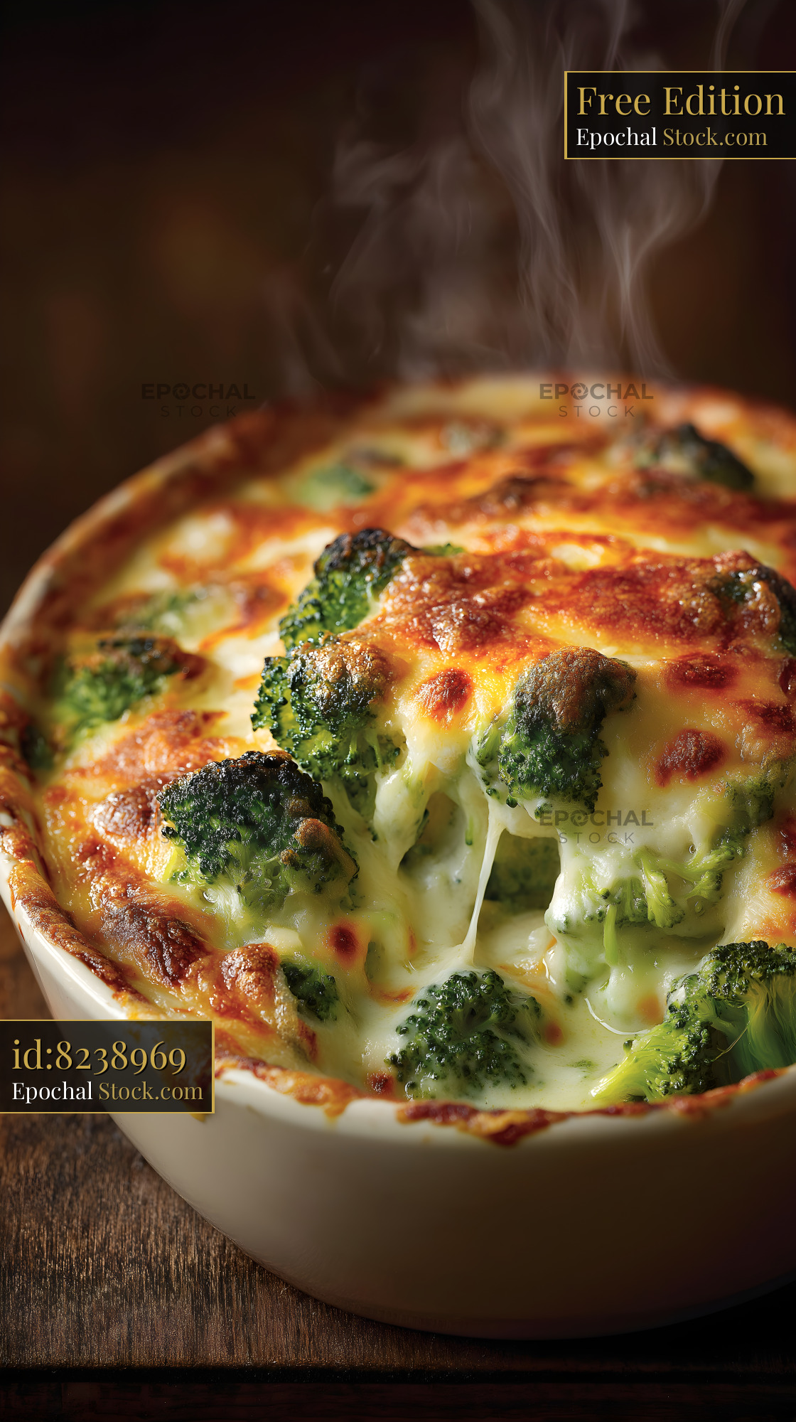 Baked dish with broccoli and cheese served hot on table Free Premium Stock Photo