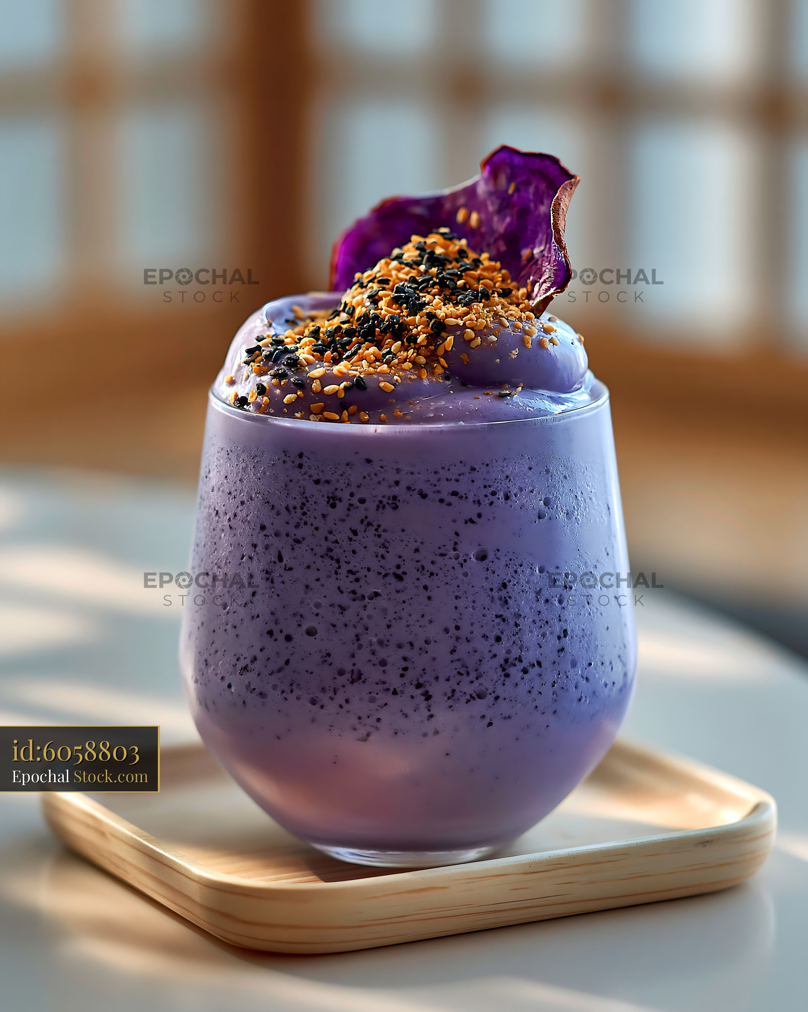 Beni imo smoothie with sesame seeds and purple sweet potato chip