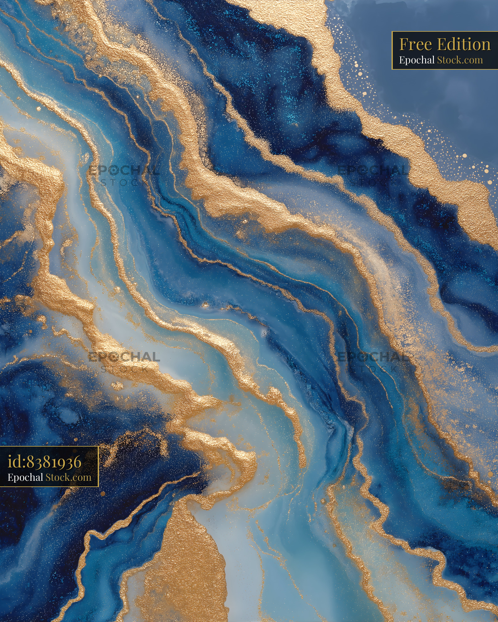 A blend of blue and gold colors creating swirling patterns. The flowing lines and textures add depth to the piece, capturing attention and interest.