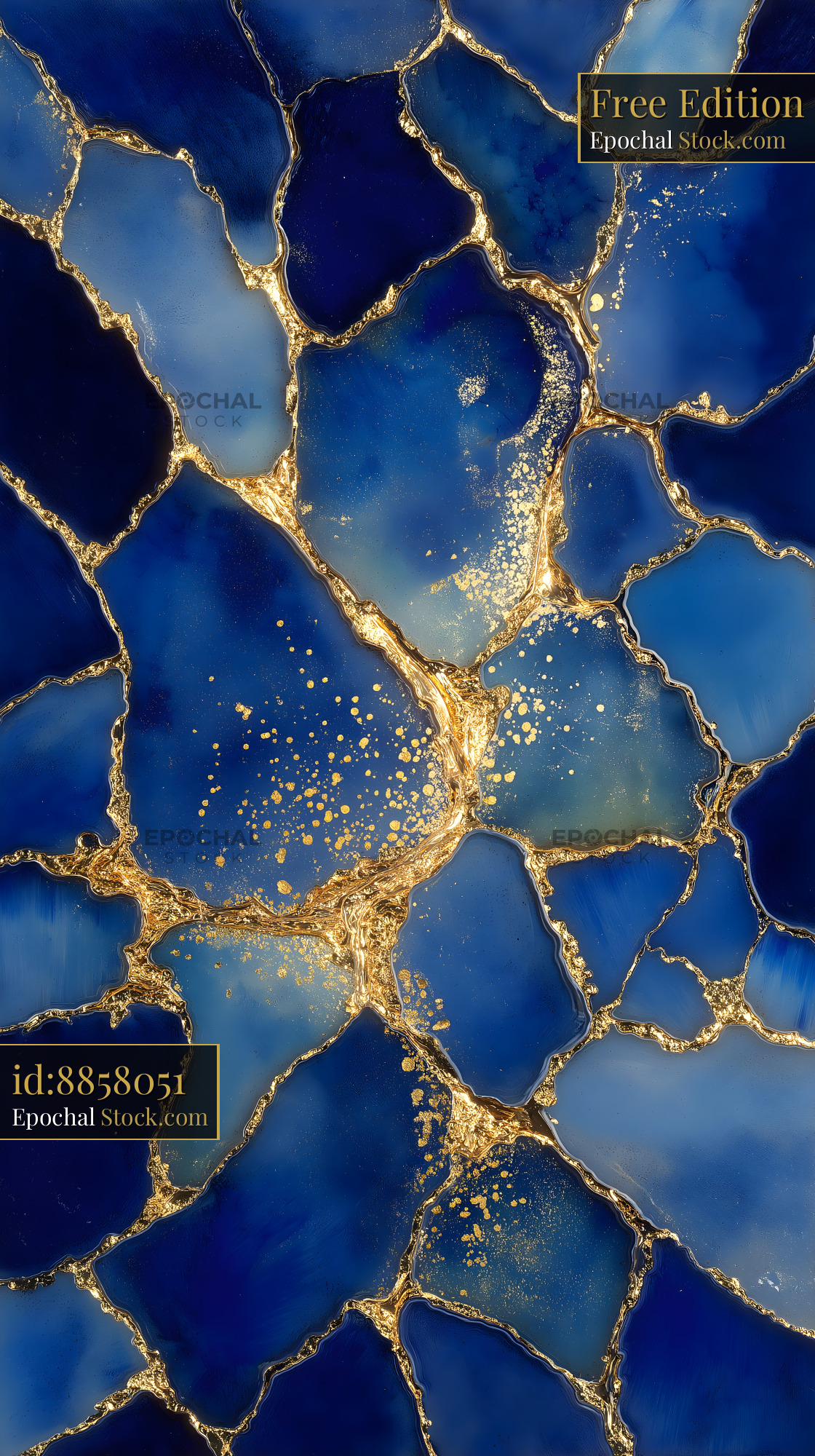 A mix of blue and gold colors. The pattern looks like cracks with golden lines. The shapes create a striking visual effect.