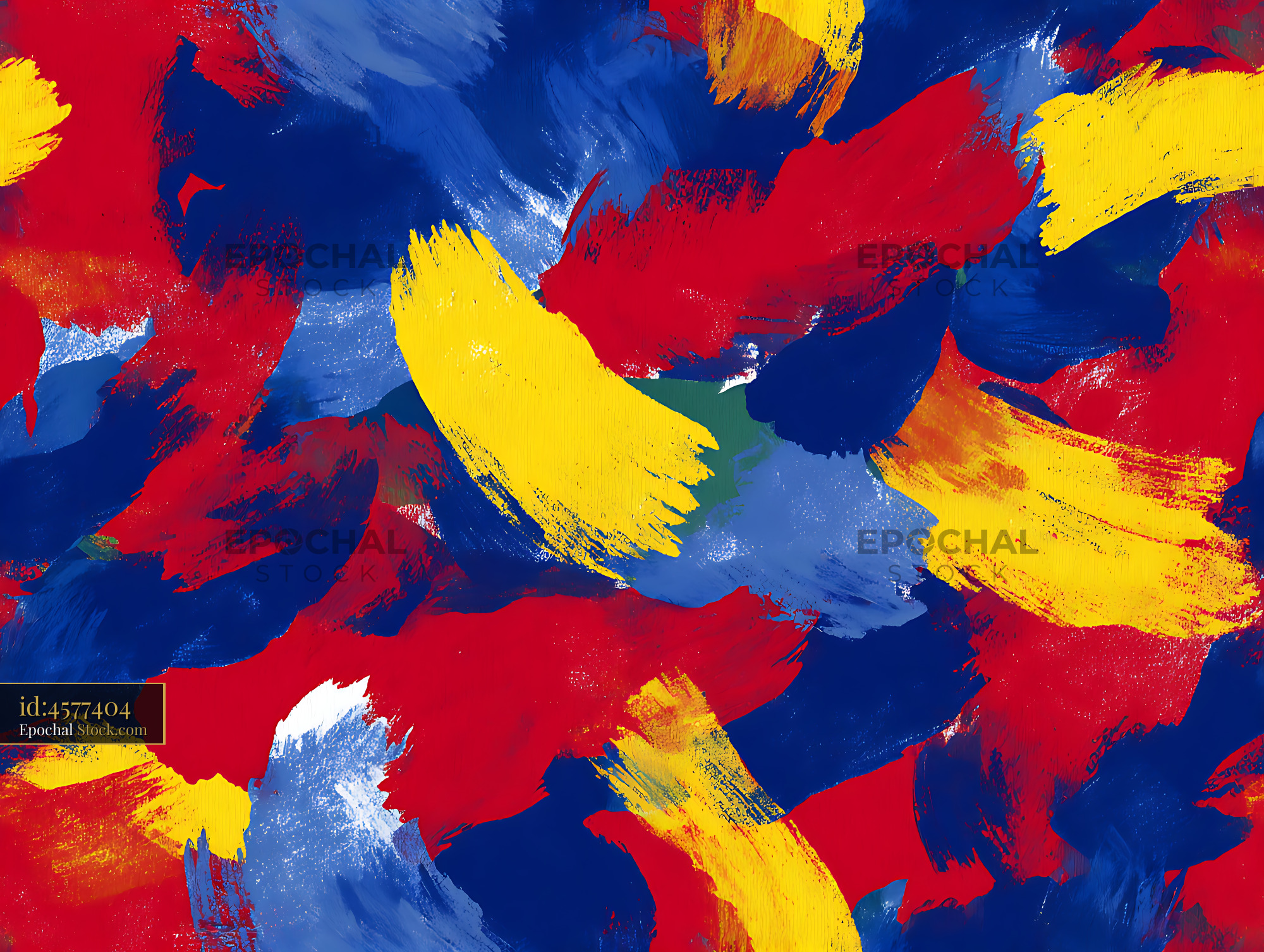 Expressive primary color brushstrokes create a bold, painterly look. Perfect for modern home decor, artistic apparel, and vibrant wallpaper or gift wrap.