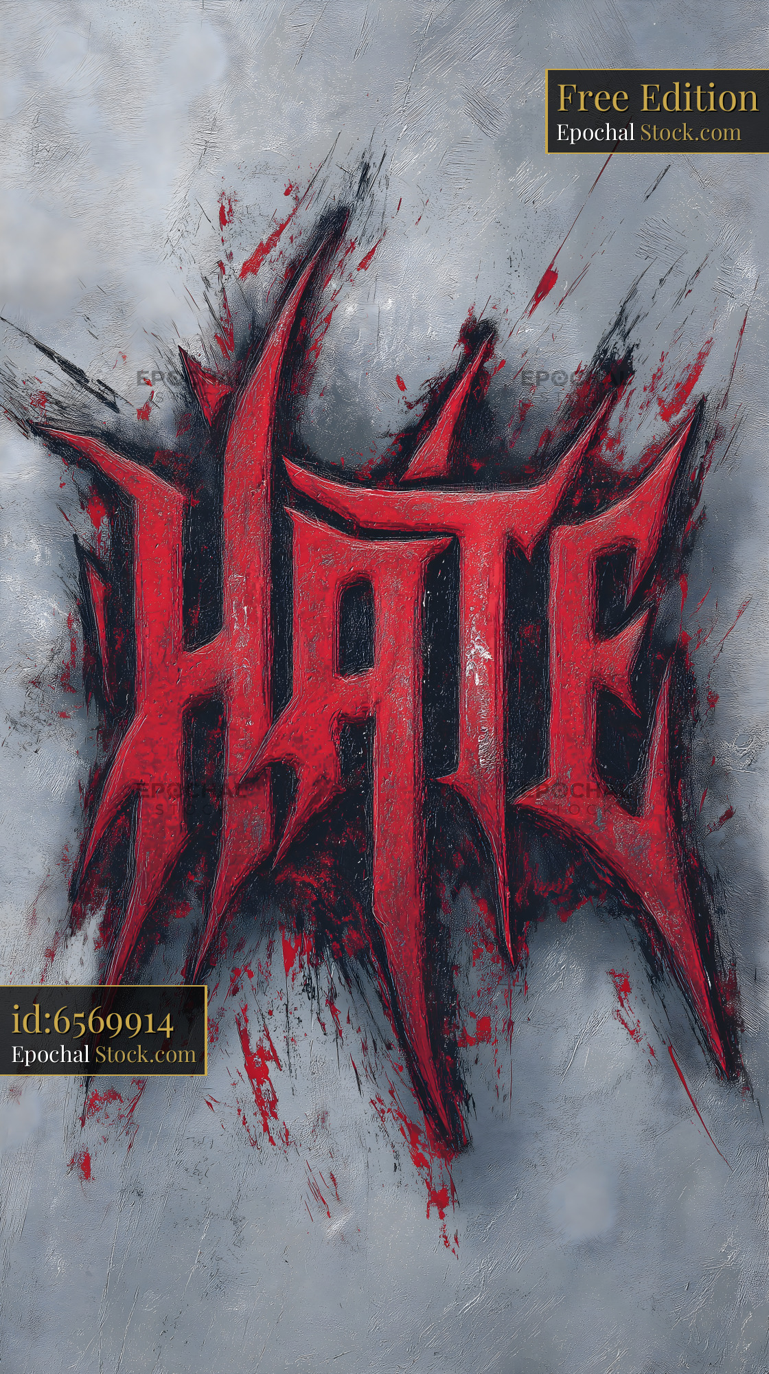 A bold red word representing strong feelings appears on a gray background. The text has a sharp design that draws focus and creates a strong impression.