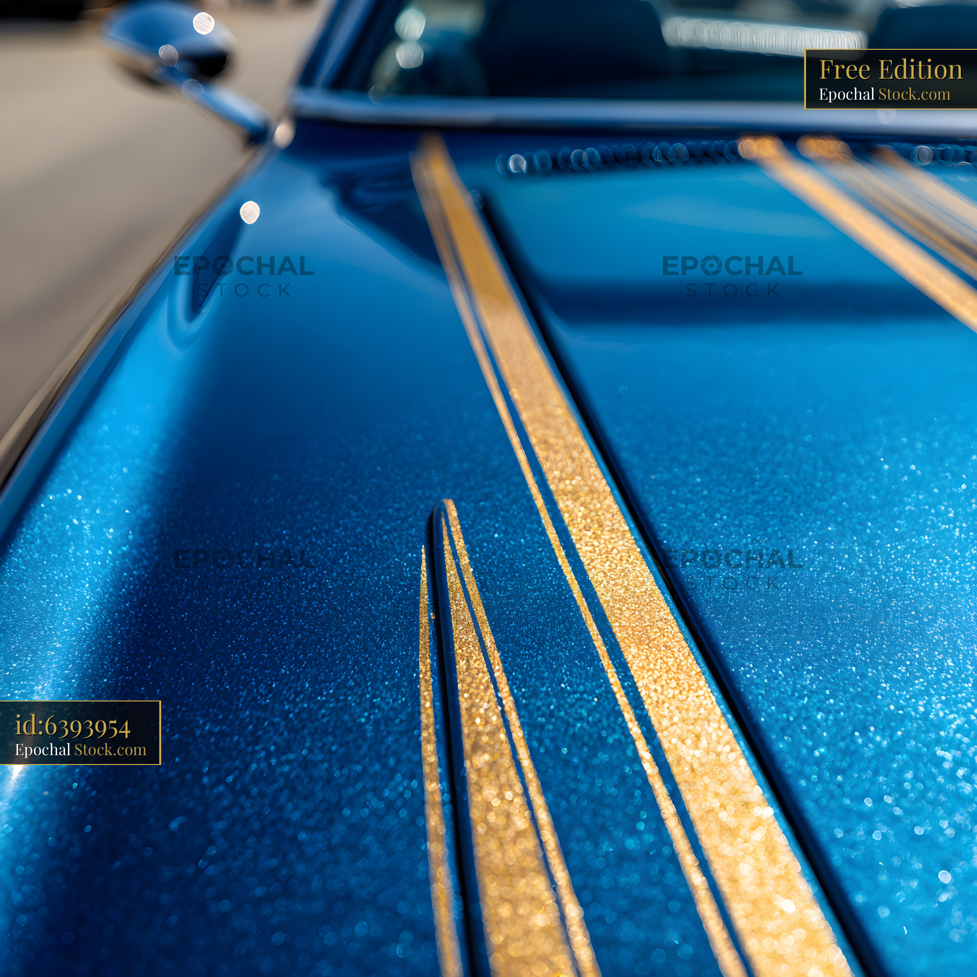 Bright blue car with gold stripes under sunlight Free Premium Stock Photo