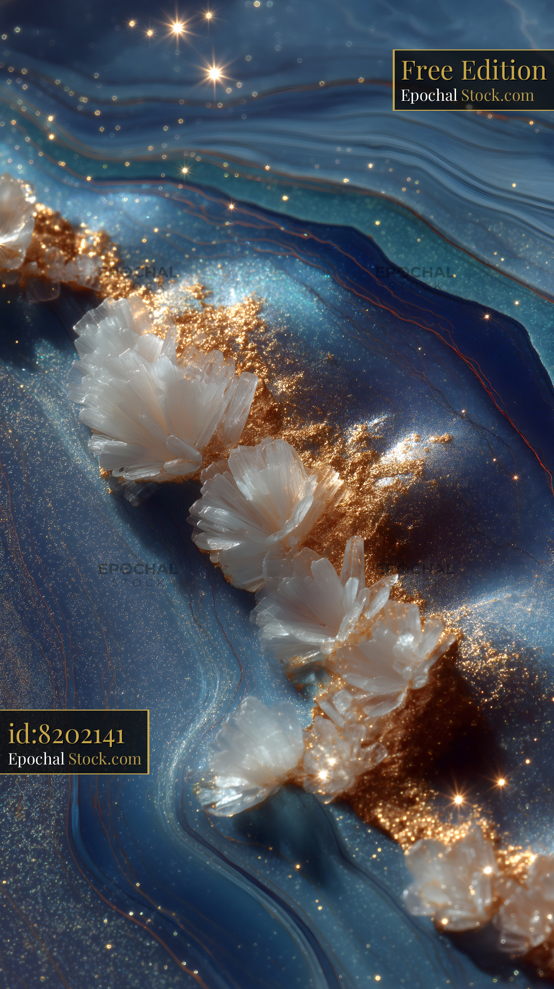 Bright crystals and gold on blue surface create a unique view Free Premium Stock Image