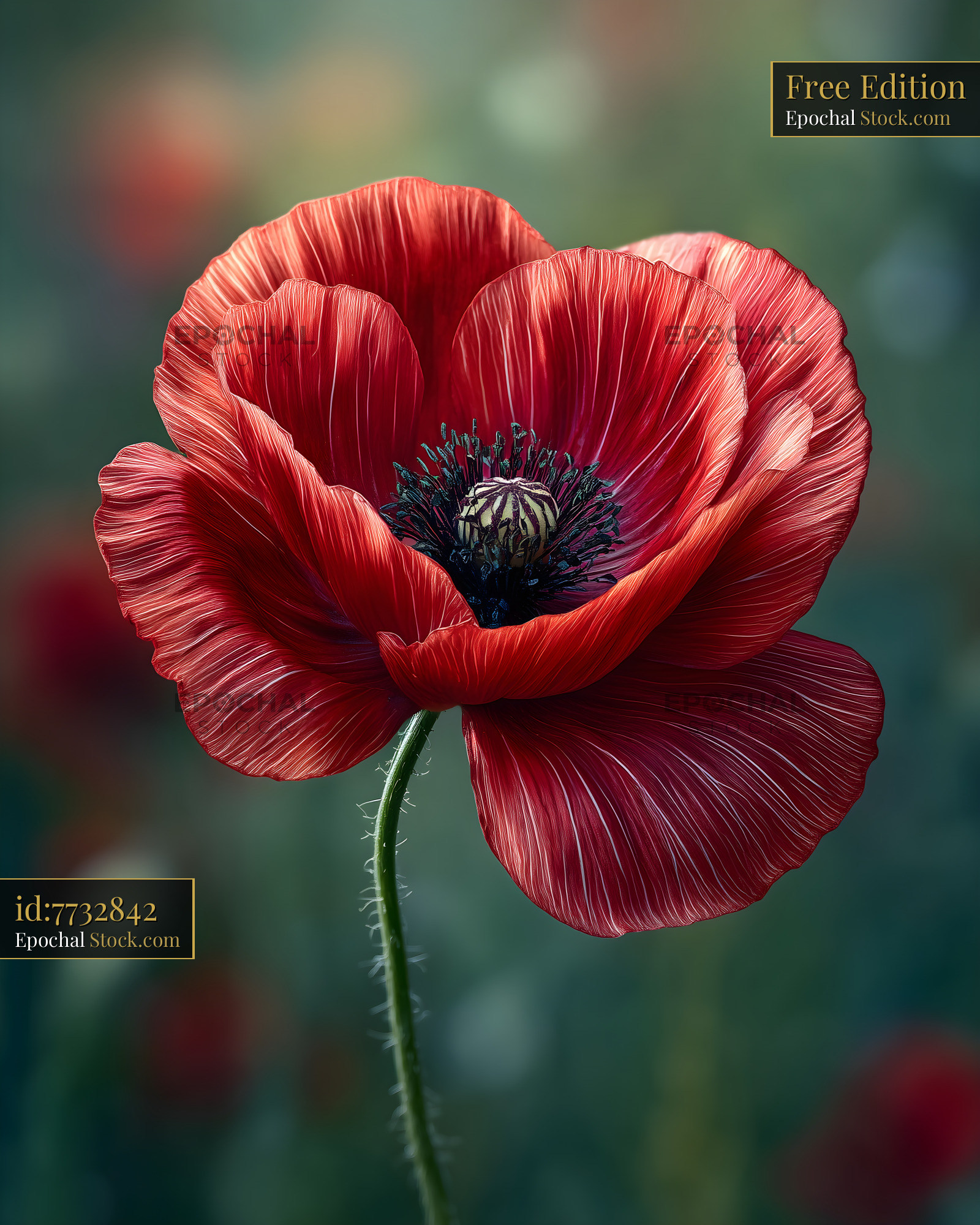 Bright red poppy flower stands tall in a green garden setting Free Premium Stock Image