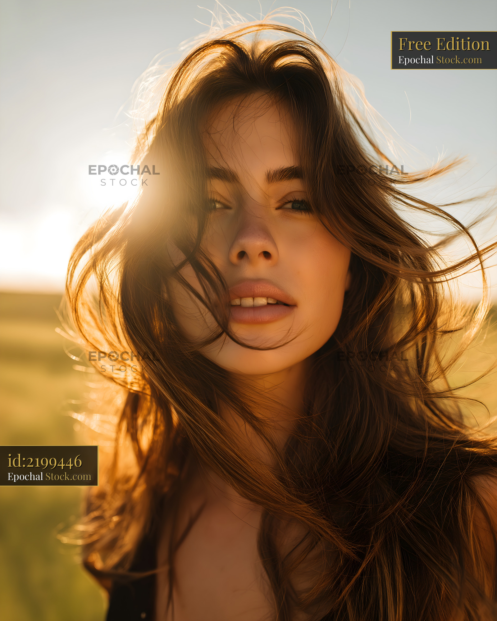Bright sun shining on woman with flowing hair outdoors Free Premium Stock Image