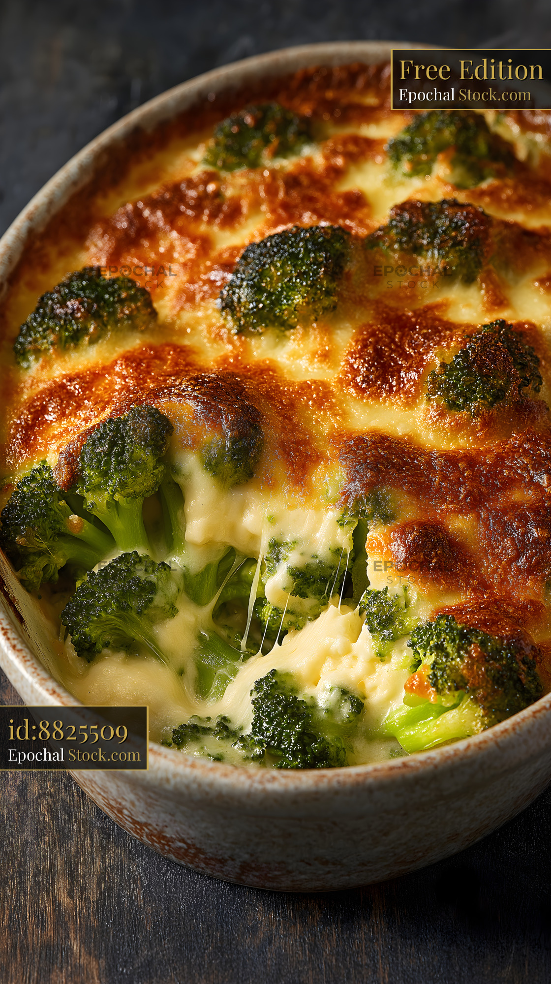 Broccoli and cheese dish served in a baked casserole bowl Free Premium Stock Photo