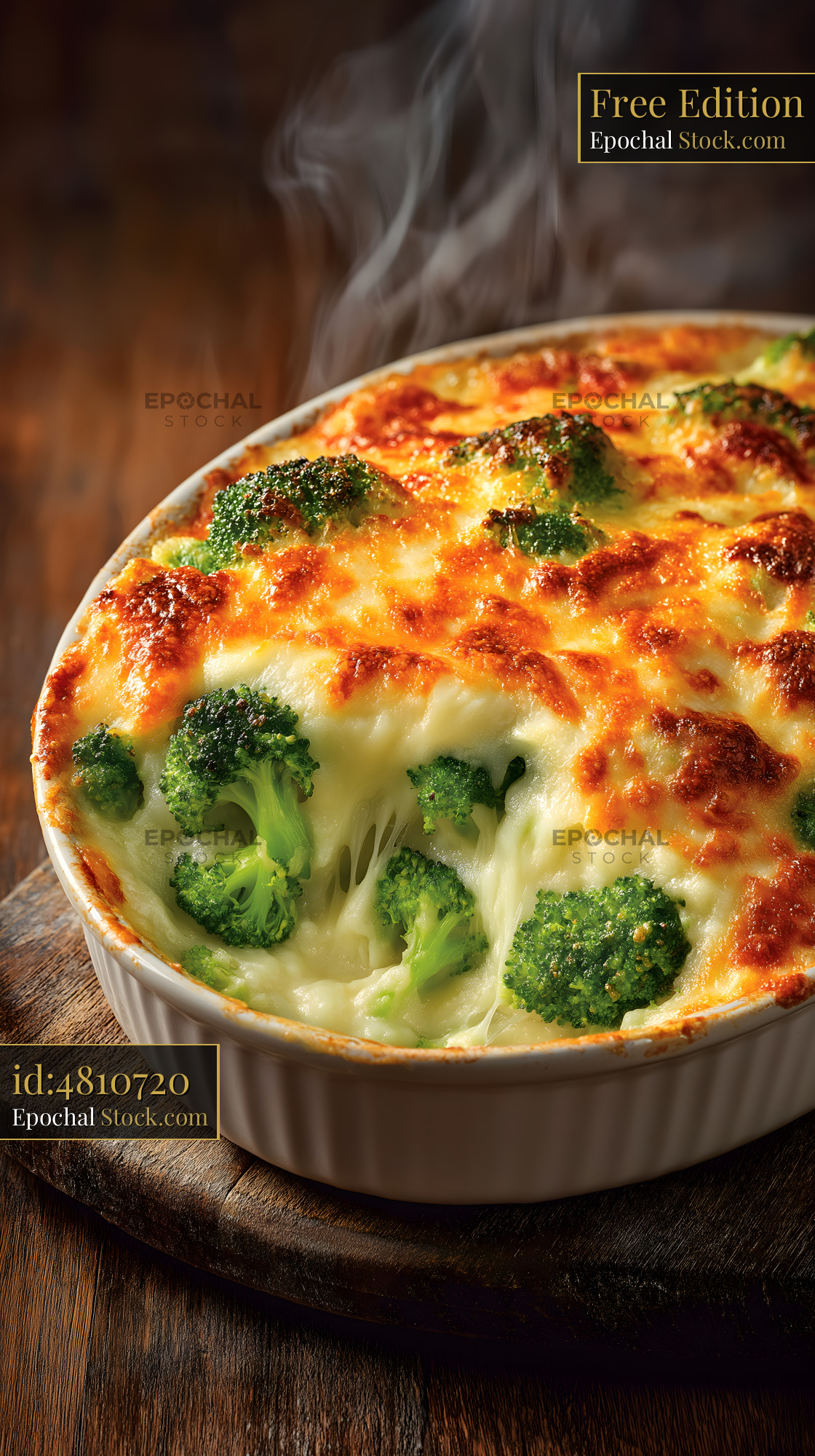 Broccoli dish with melted cheese cooks in a baking dish Free Premium Stock Image