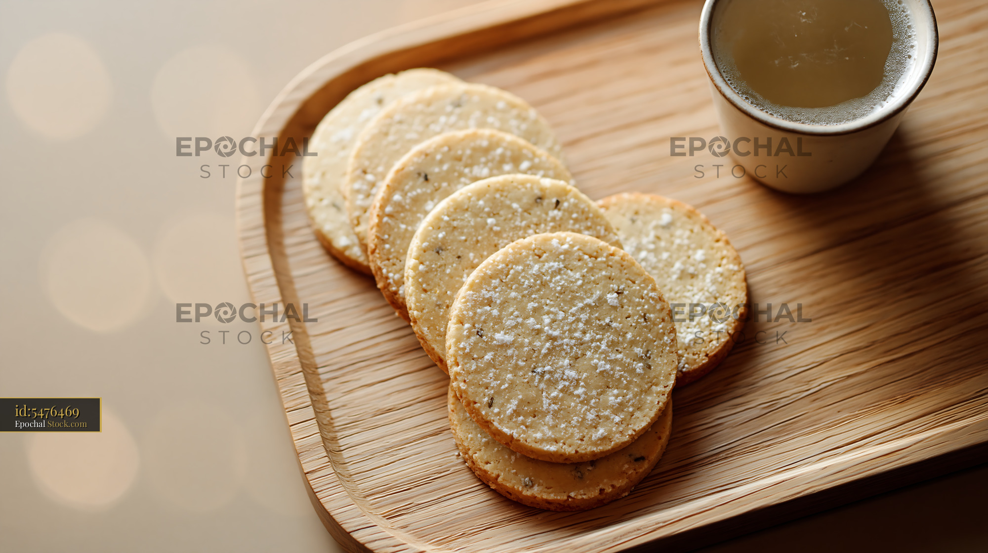 Homemade cardamom chickpea biscuits dusted with icing sugar on a wooden tray, evoking a sense of cozy afternoon indulgence and healthy comfort food in soft, warm light.