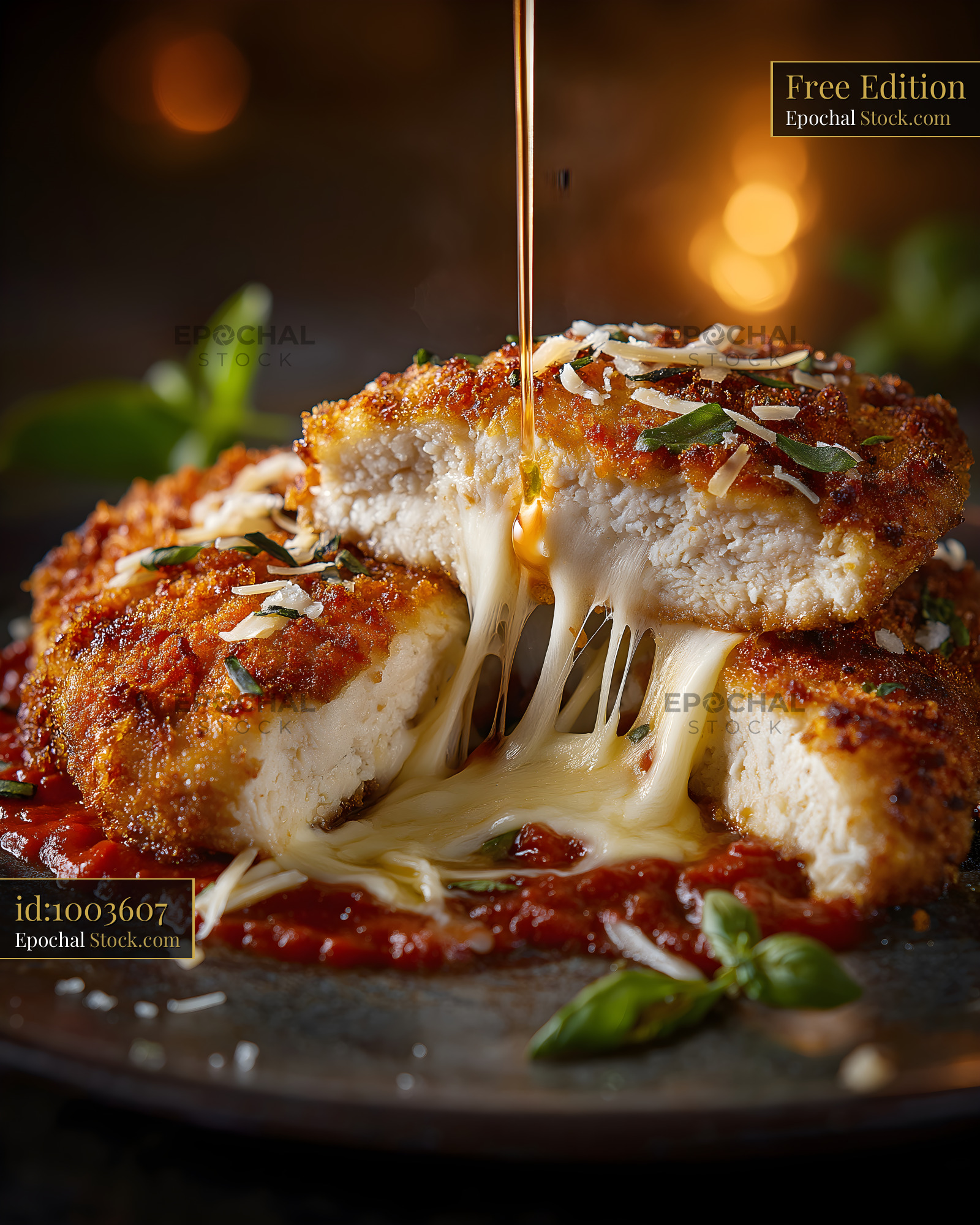 Cheese-filled chicken dish with sauce and herbs Free Premium Stock Image