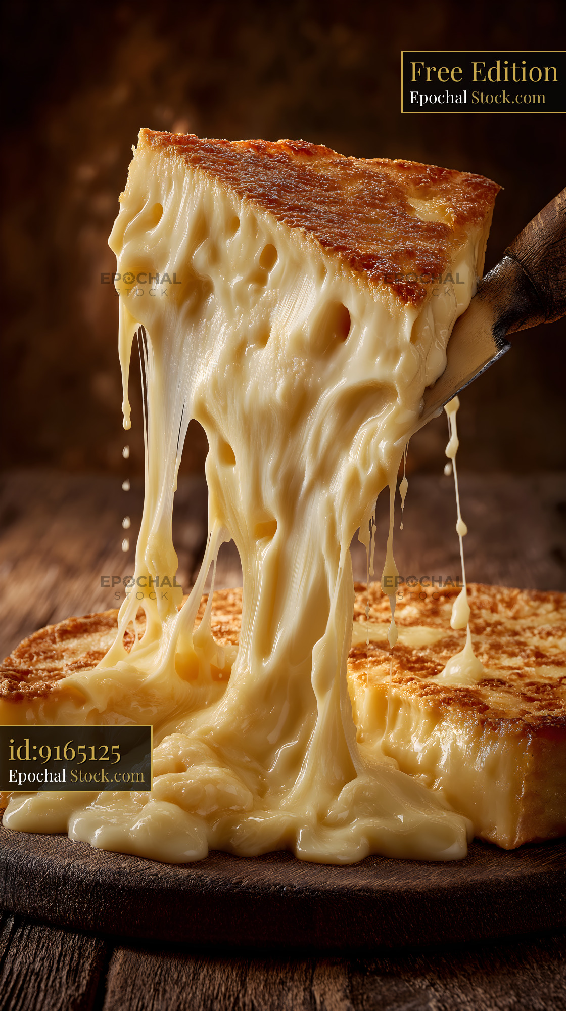 Cheese melting on wooden board ready for serving Free Premium Stock Photo