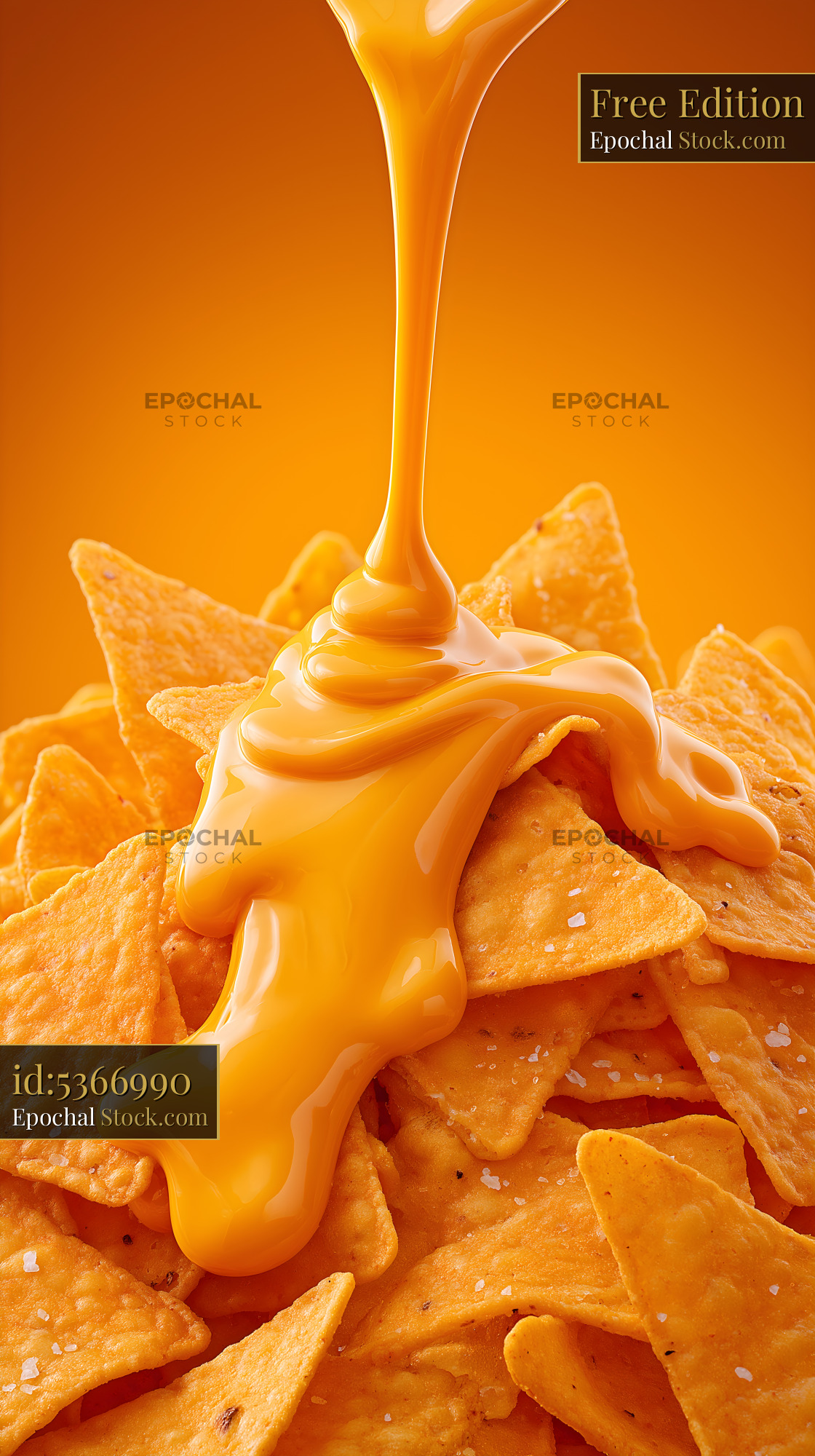 Cheese sauce pours over nacho chips in a bright scene Free Premium Stock Photo