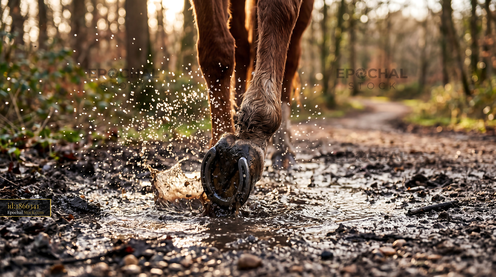 Capture the spirit of the trail with this atmospheric horse hoof splash. Ideal for equestrian home decor, rustic wallpaper, and unique quilting cotton projects.