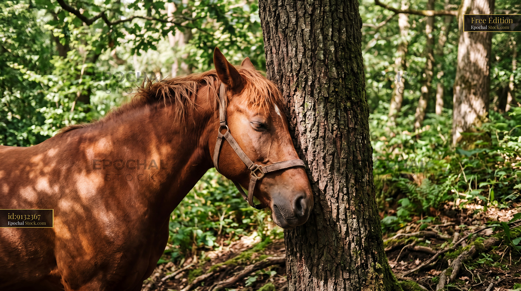 A seamless equestrian pattern featuring a chestnut horse in dappled morning light. Perfect for rustic wallpaper, nature-inspired quilting fabric, and woodland home decor.