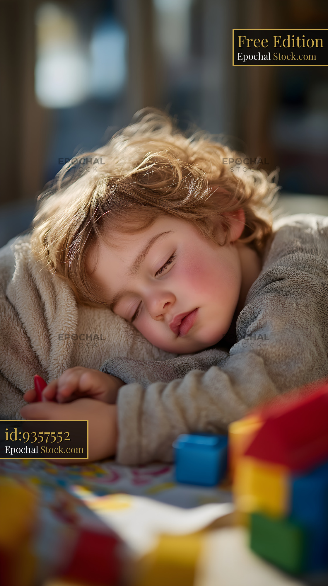 Child sleeps on a soft blanket while holding toys Free Premium Stock Image