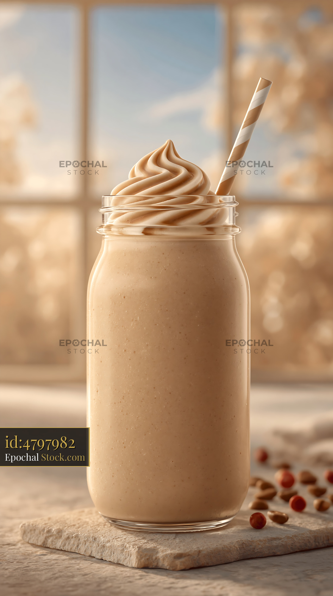 A refreshing cloudberry cream milkshake served in a glass jar with a striped paper straw, evoking a sense of cozy indulgence, summer warmth, and artisanal beverage enjoyment.