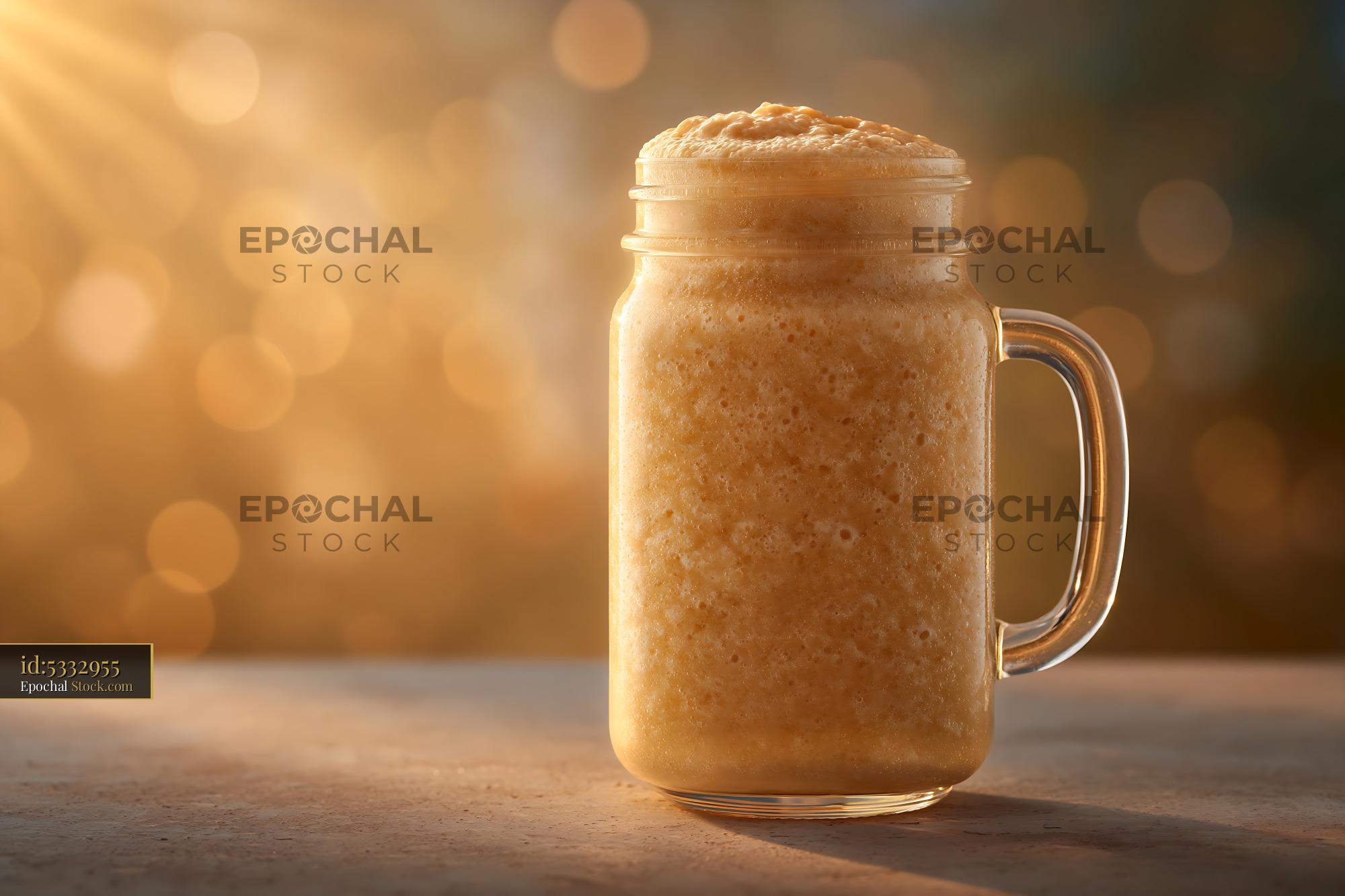 Cloudberry cream milkshake in a glass mug with warm golden hour bokeh