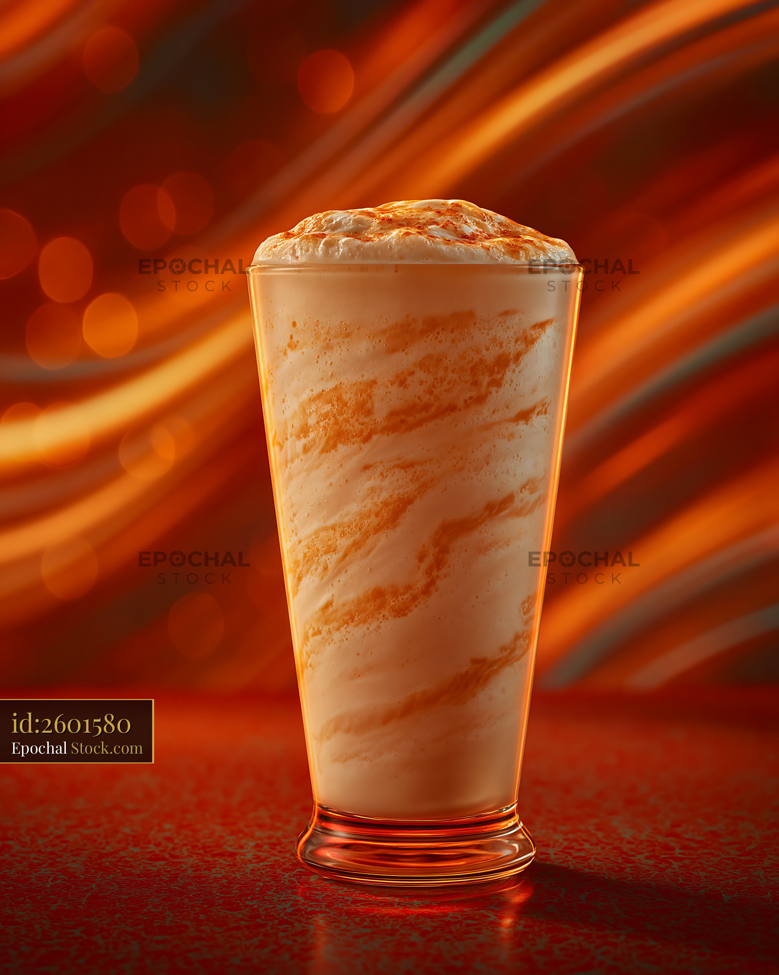 A delicious cloudberry cream milkshake served in a tall glass, set against a warm, glowing orange bokeh background that evokes feelings of comfort, indulgence, and seasonal refreshment.