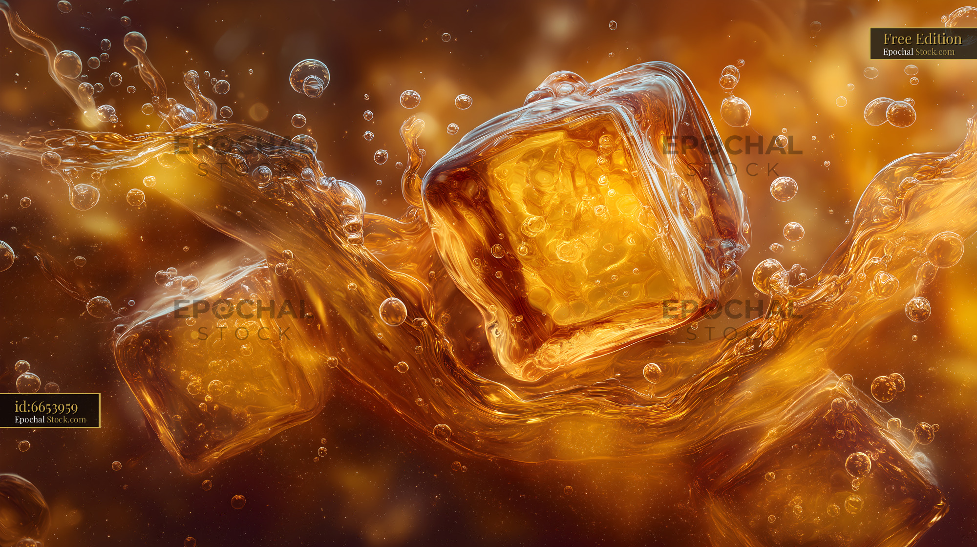 Cold drink with ice cubes and bubbles in amber liquid Free Premium Stock Photo