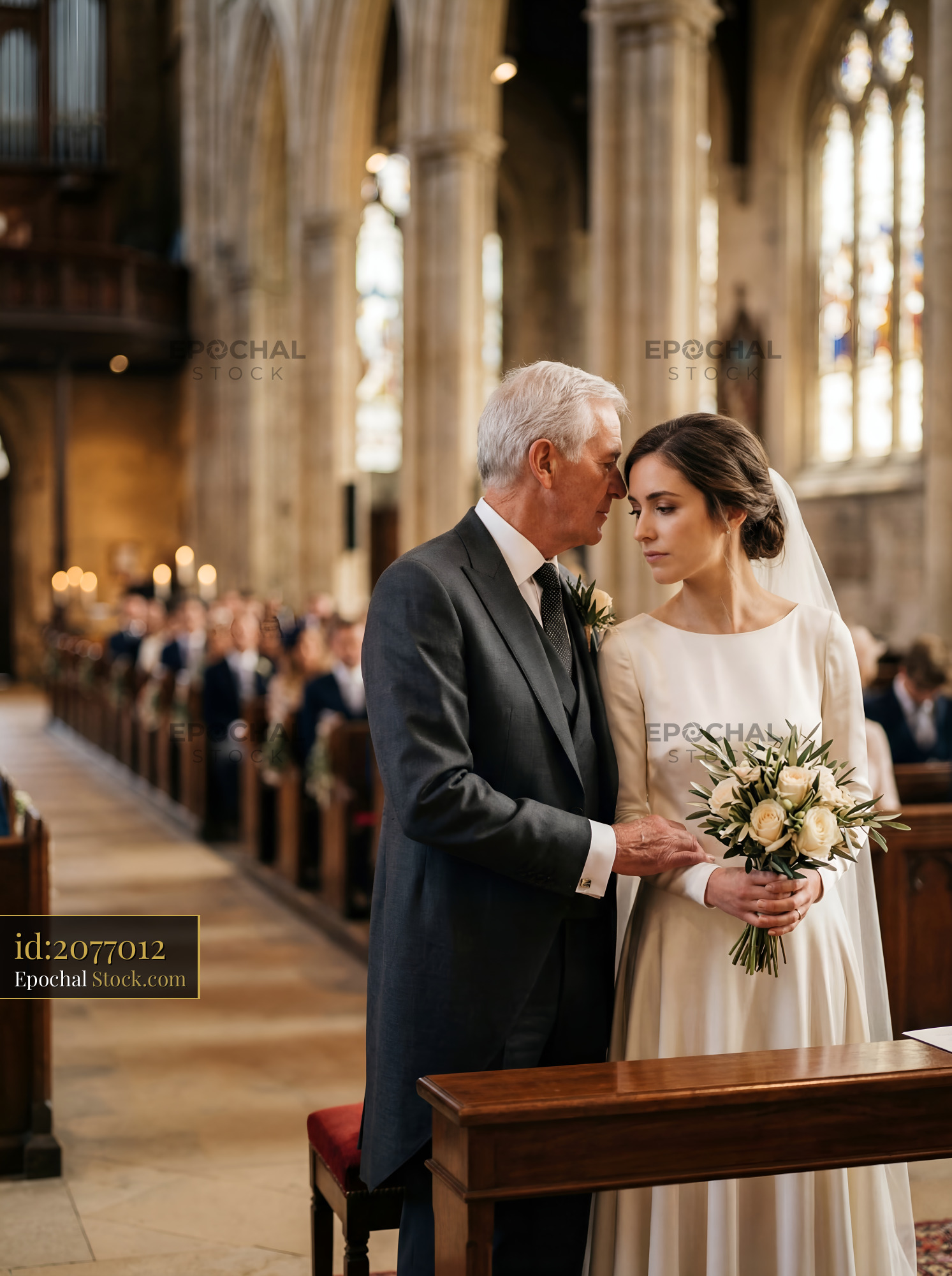Couple shares a moment during a wedding ceremony in a church Premium Stock Image