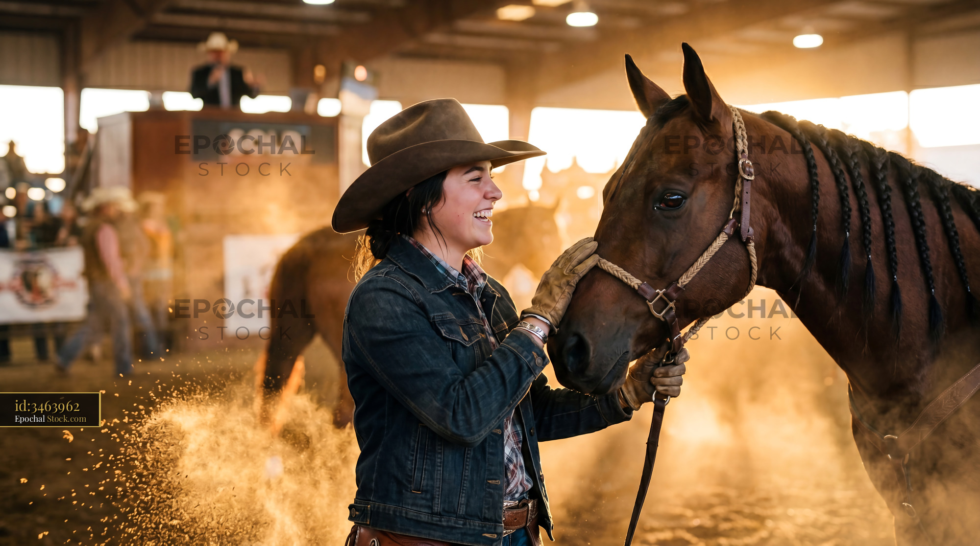 Cowgirl & Braided Bay Horse Auction Moment