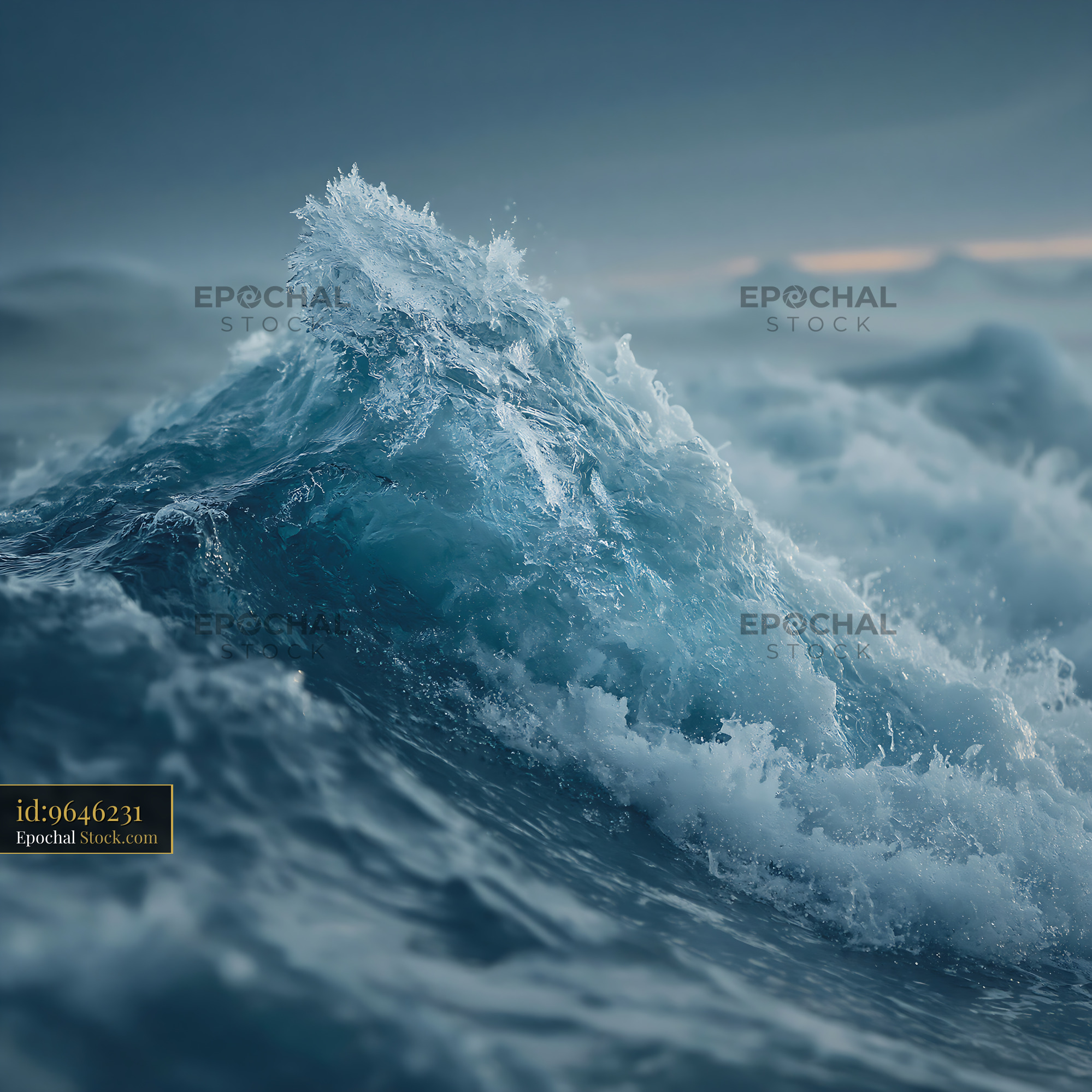 A powerful turquoise wave peaks and breaks in the freezing arctic ocean, capturing the raw energy and moody atmosphere of a stormy sea during a cold winter dusk.