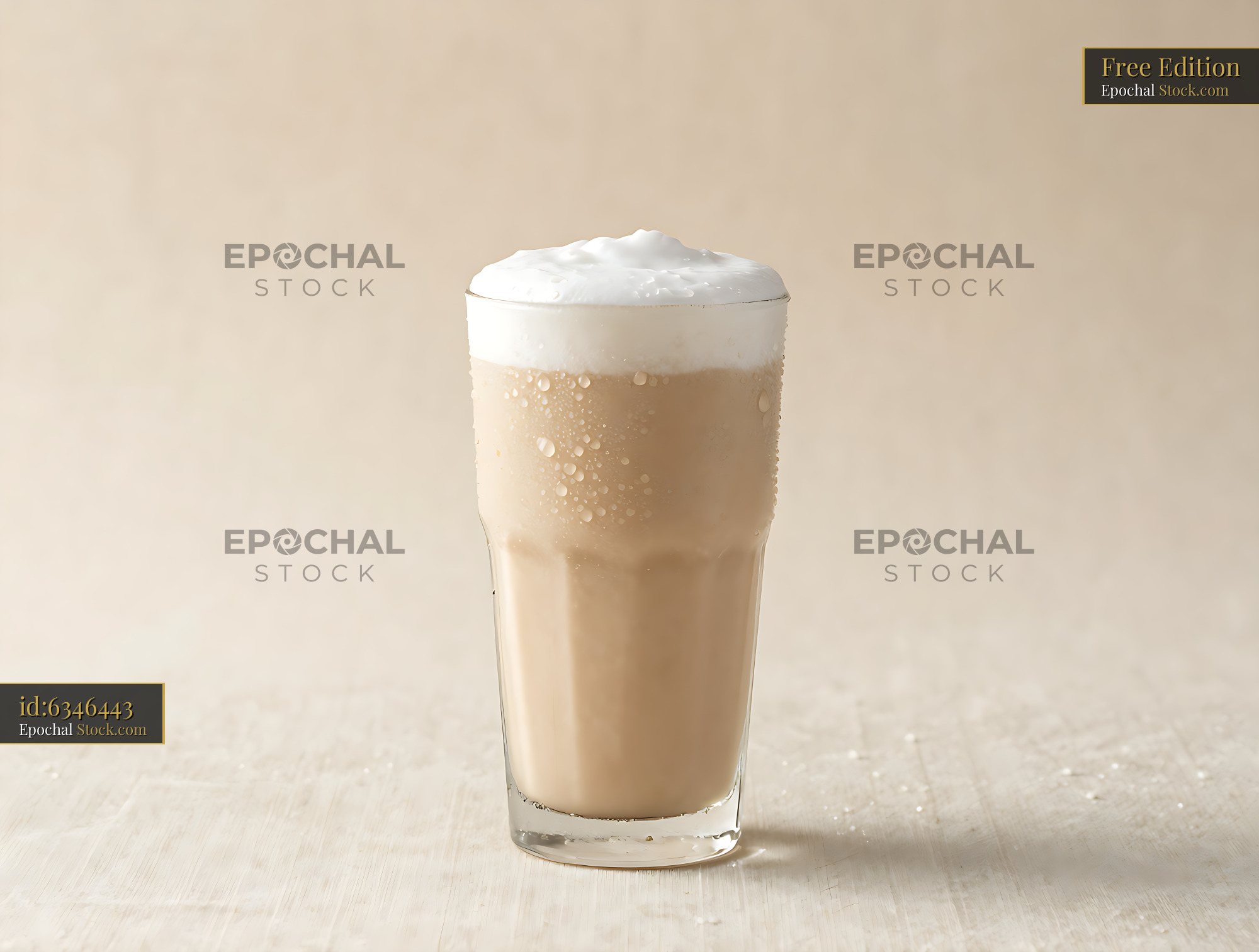 Refreshing cupuacu cream smoothie topped with thick foam and condensation droplets, capturing a sense of tropical energy and healthy indulgence in a minimalist setting.