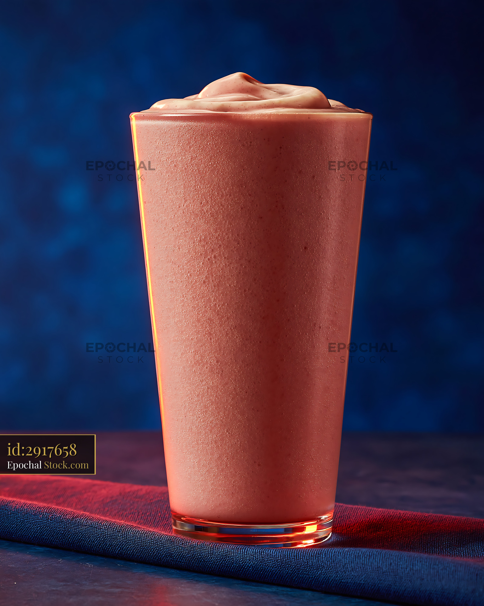 A thick plum wine cream milkshake with a rich texture and vibrant pink color, served in a glass against a moody dark blue bokeh background with warm side lighting.