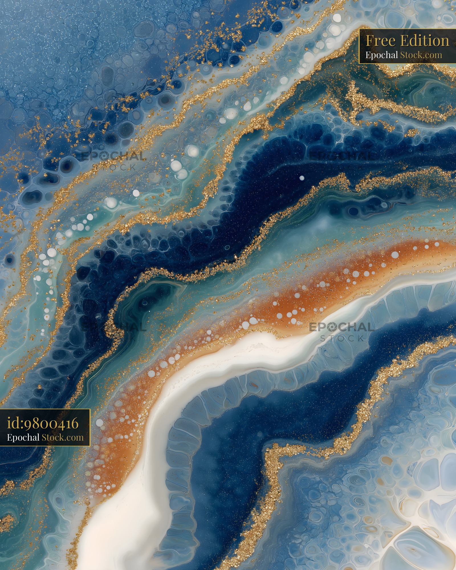 Creative art of blue and gold flowing design on canvas surface Free Premium Stock Image
