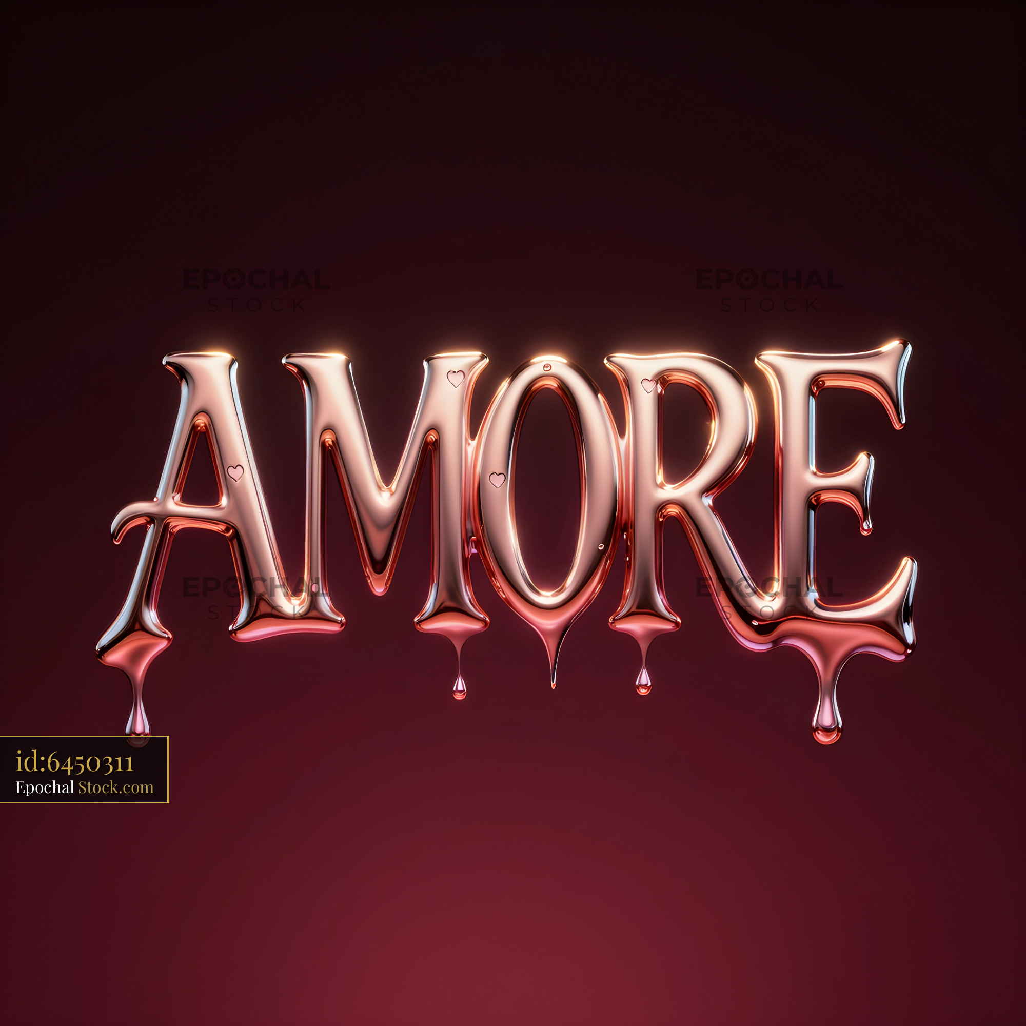 The word Amore is displayed in a shiny, liquid-like style. The letters appear to drip as if they are made of a smooth substance. The background is a dark shade, highlighting the design.