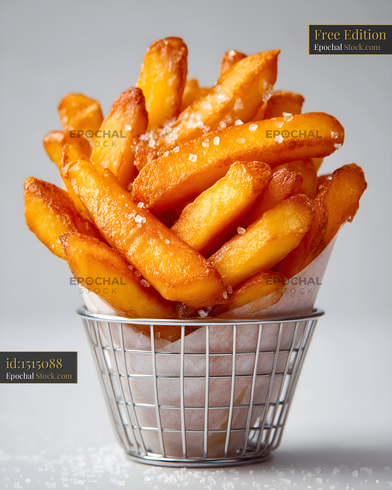 Crispy french fries served in metal basket with salt Free Premium Stock Photo