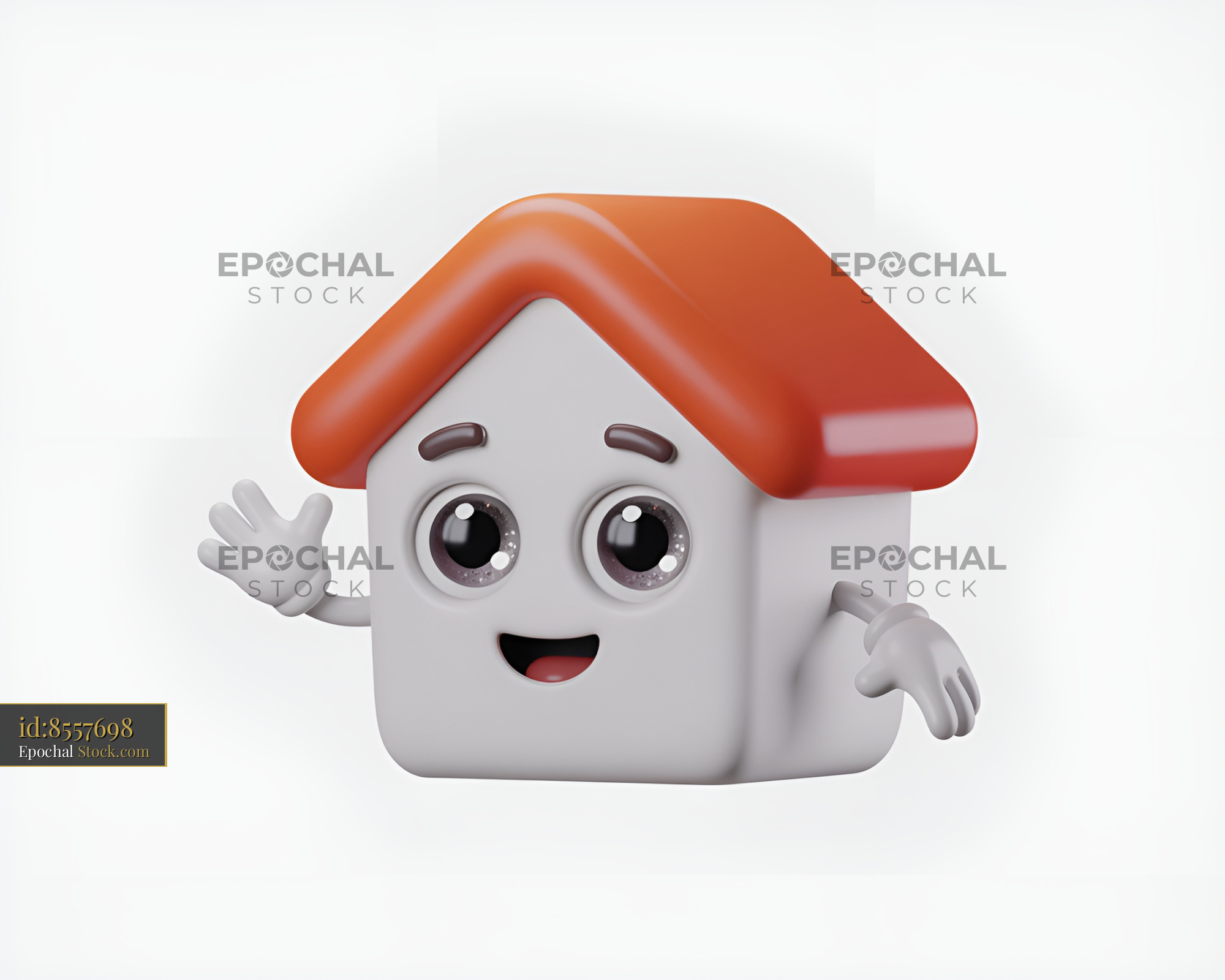 Cute cartoon house character waving with a smile Premium Stock Photo