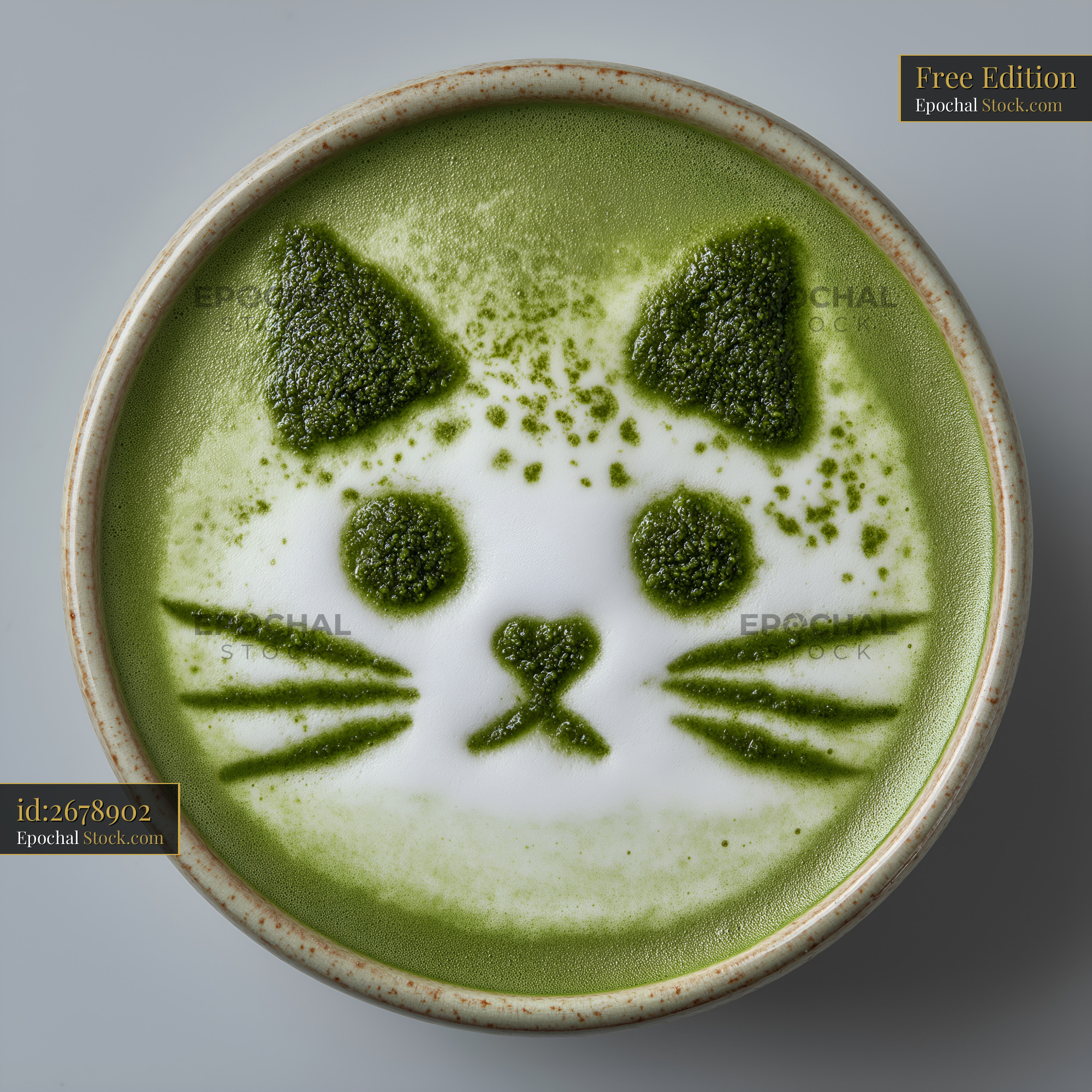 Cute cat design in matcha latte serves as a fun drink Free Premium Stock Photo