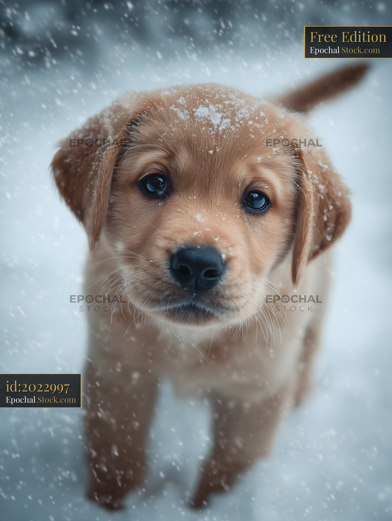Cute puppy walking in the snow during winter Free Premium Stock Image