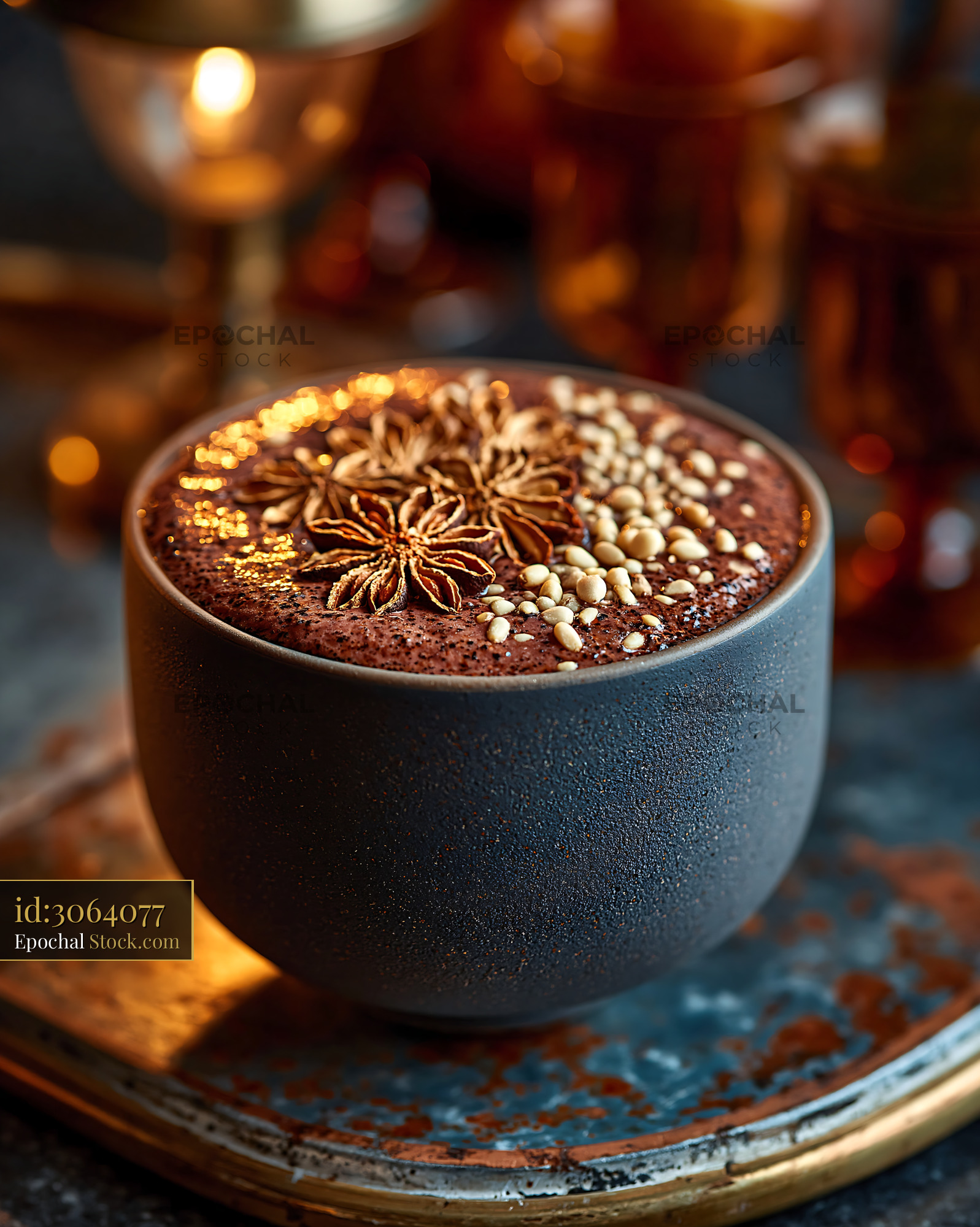 Creamy daechu jujube smoothie garnished with star anise and pine nuts in a dark bowl, evoking themes of traditional Korean wellness, warmth, and cozy autumn comfort.
