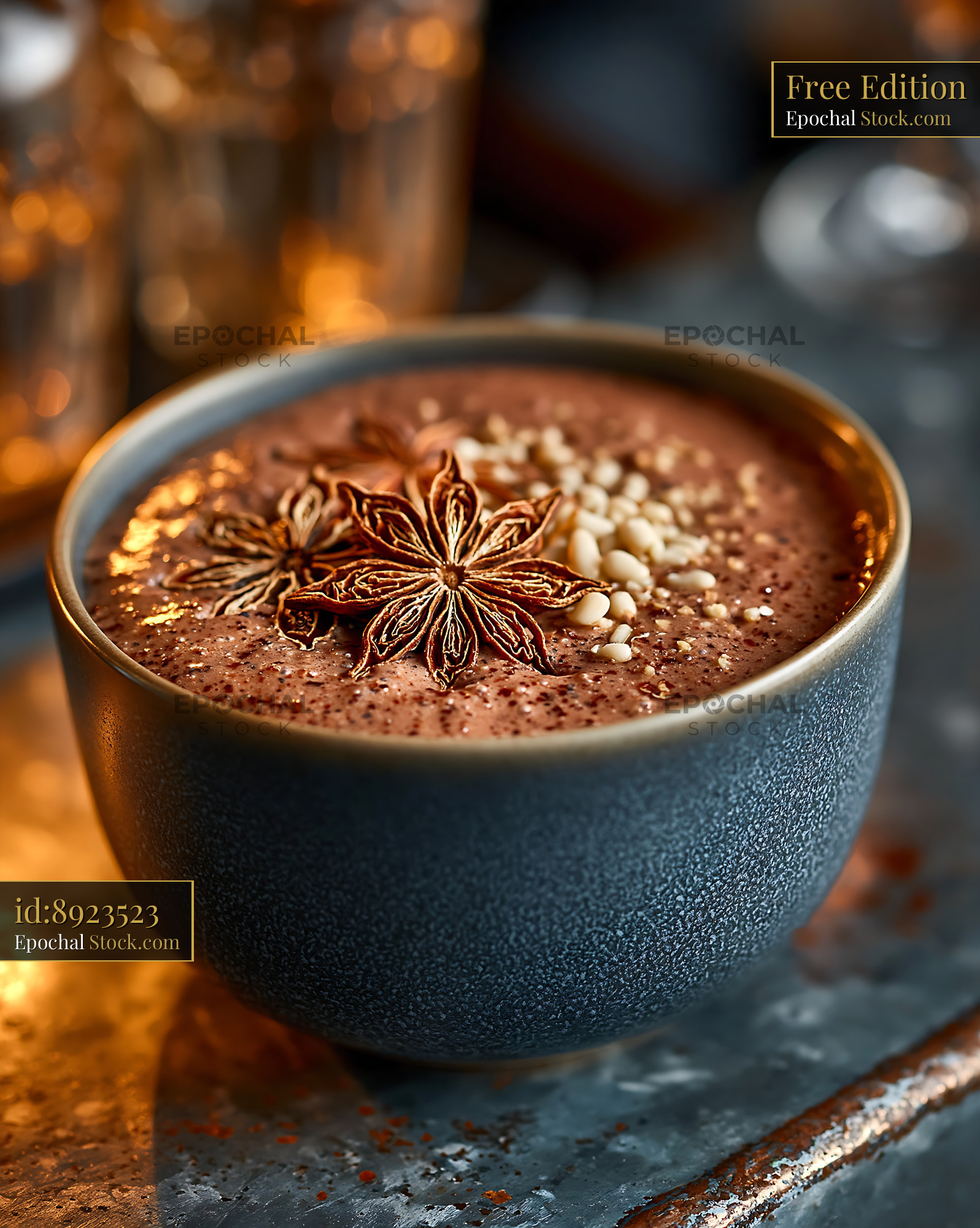 A creamy daechu jujube smoothie garnished with star anise and pine nuts, served in a rustic bowl under warm light to evoke a sense of traditional wellness and cozy comfort.