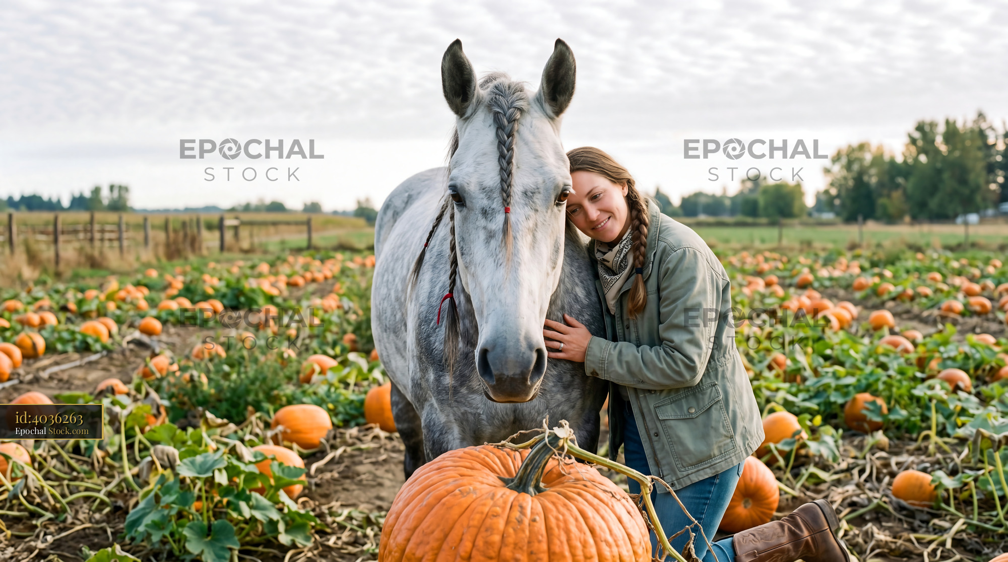 Dapple Grey Horse & Cowgirl Pumpkin Patch