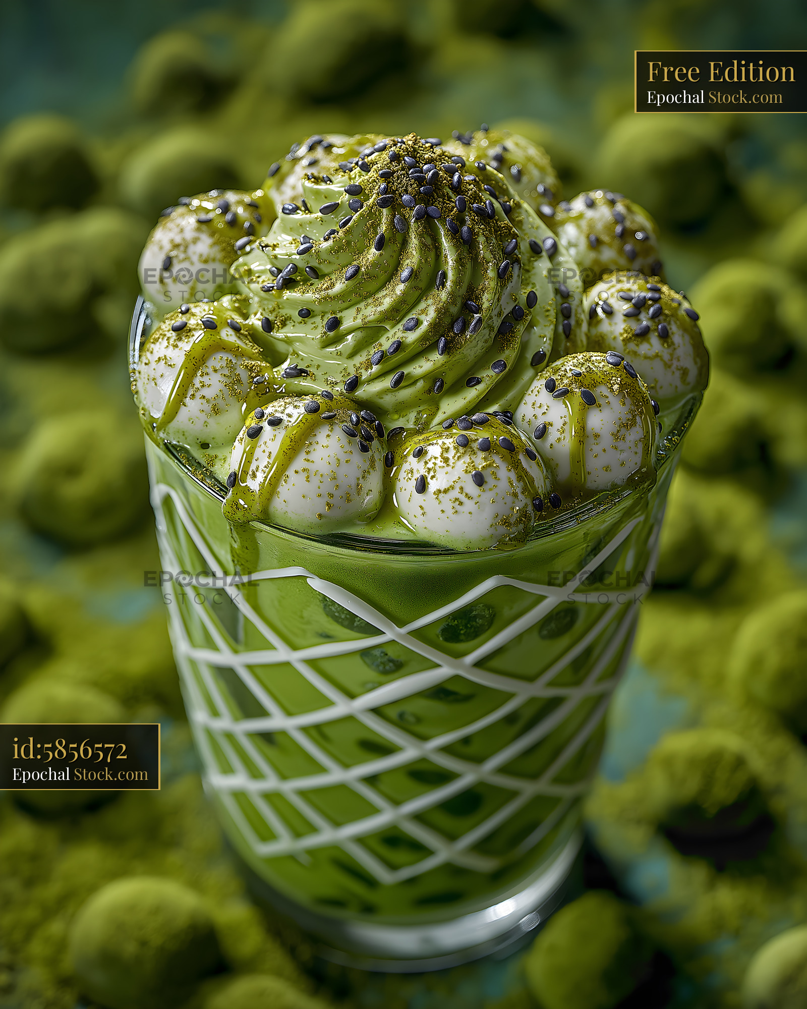 Delicious dessert made with matcha and cream toppings Free Premium Stock Image