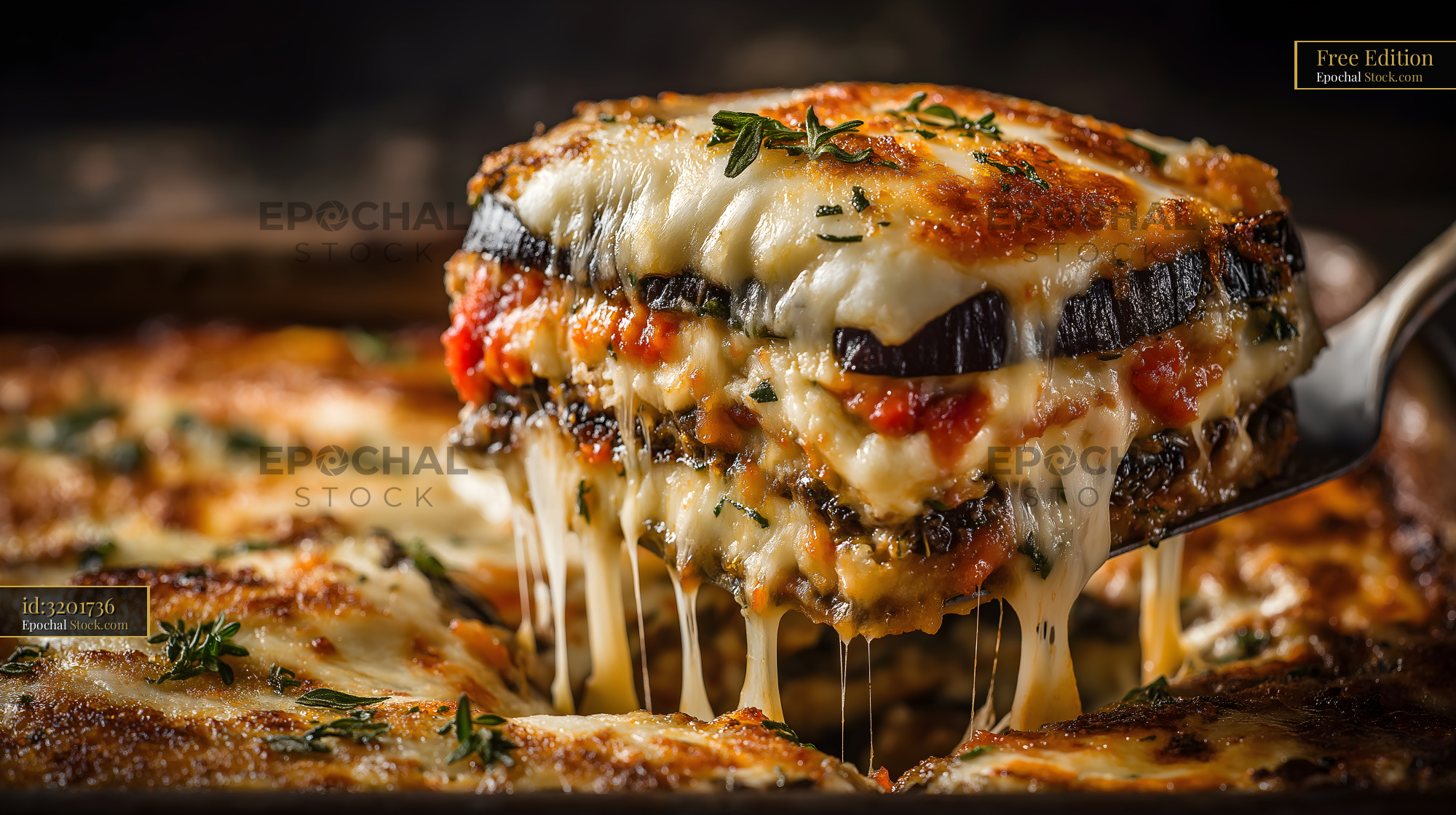 Delicious layered dish served in a baking tray at dinner time Free Premium Stock Image