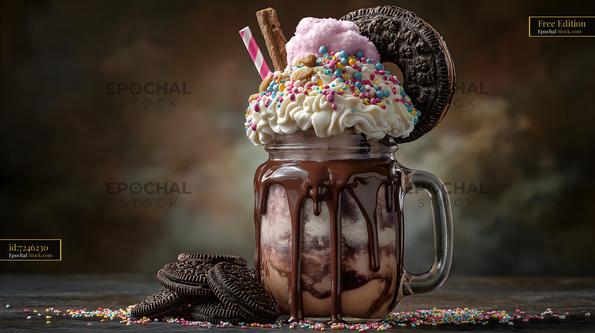 Dessert drink with ice cream and cookies in a glass jar Free Premium Stock Image