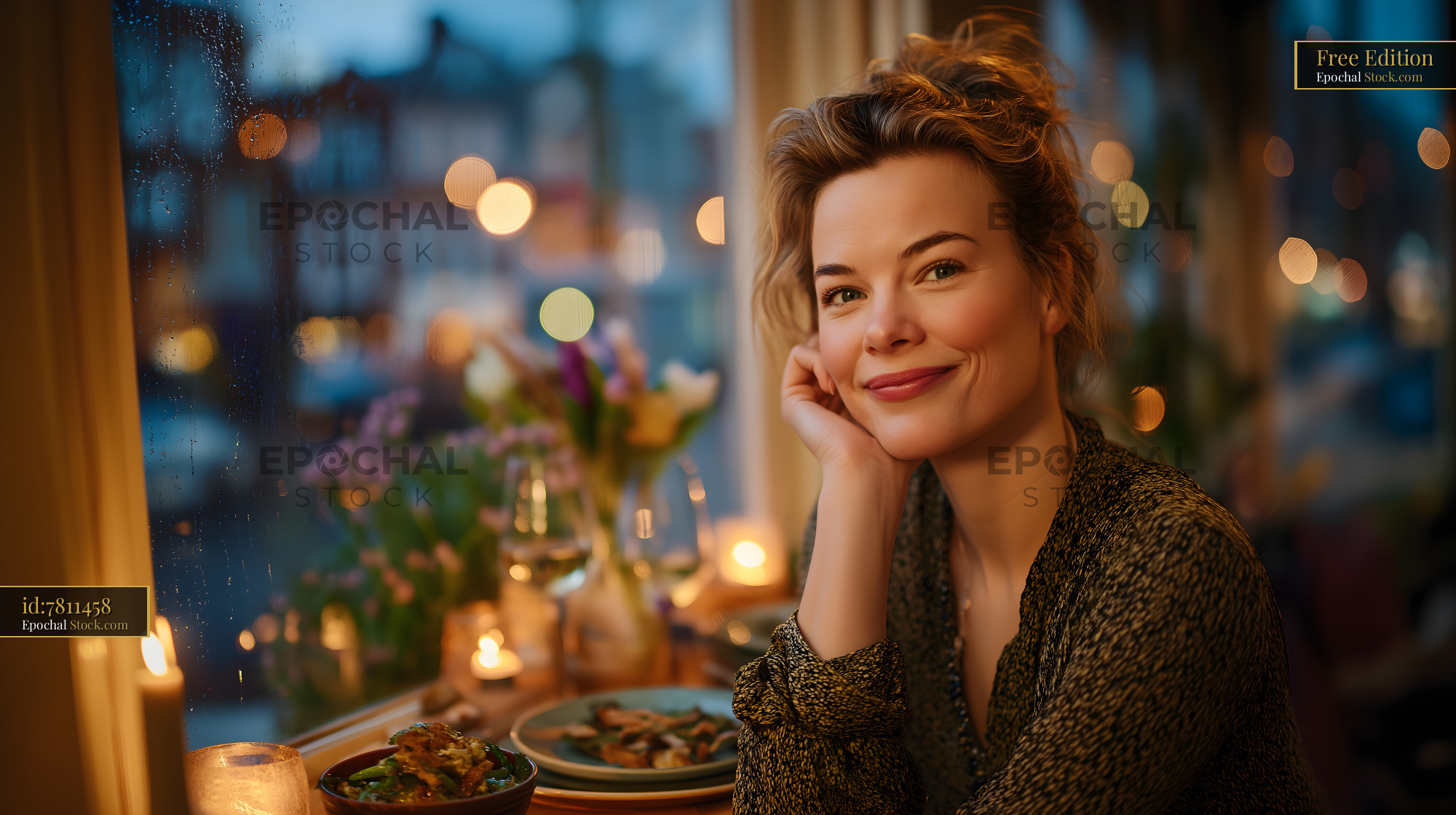 Dinner at a cozy restaurant with warm lights in the evening Free Premium Stock Photo