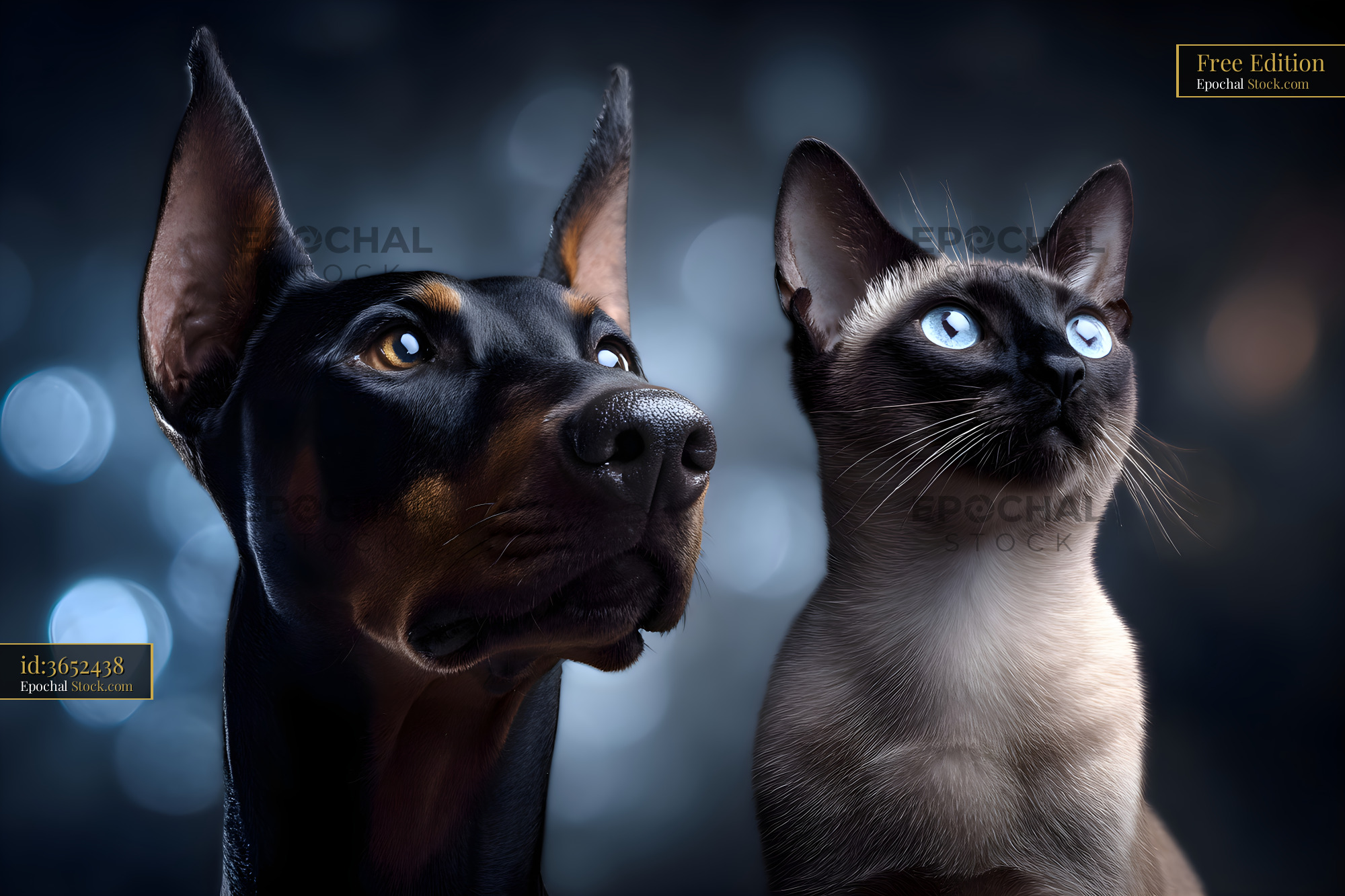 Dog and cat looking at the stars in a dark night sky Free Premium Stock Photo