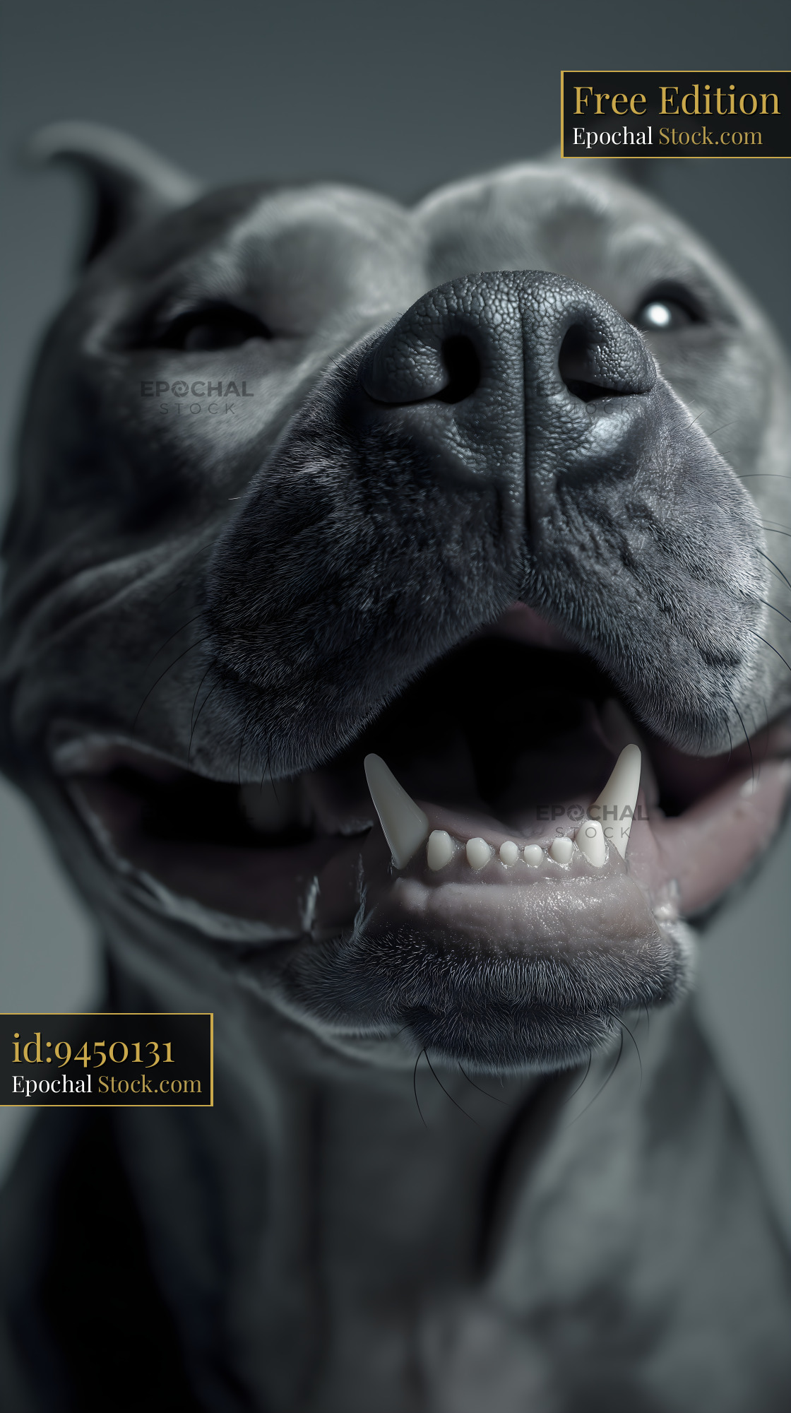 Dog smiling in black and white studio setting Free Premium Stock Photo