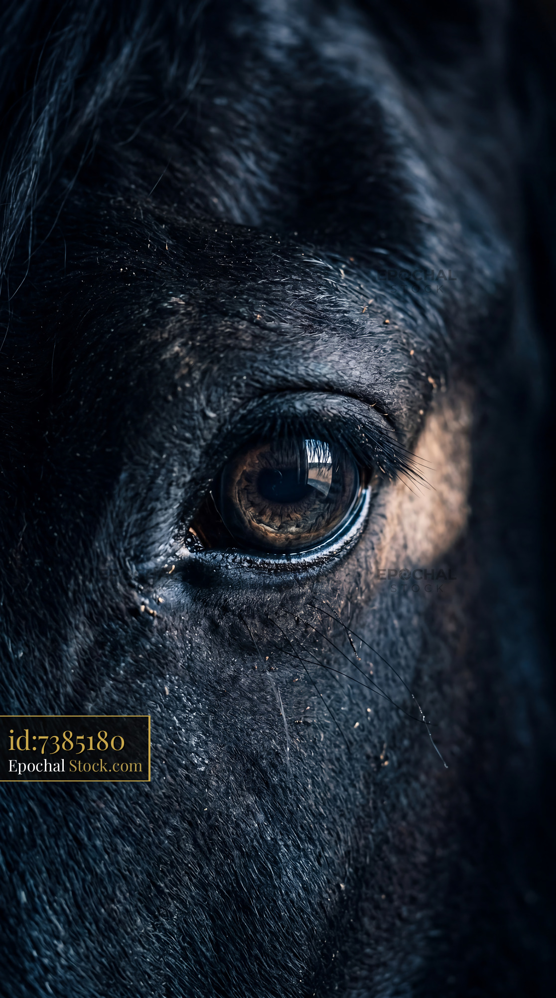Dramatic Friesian Horse Eye Macro Midnight Blue