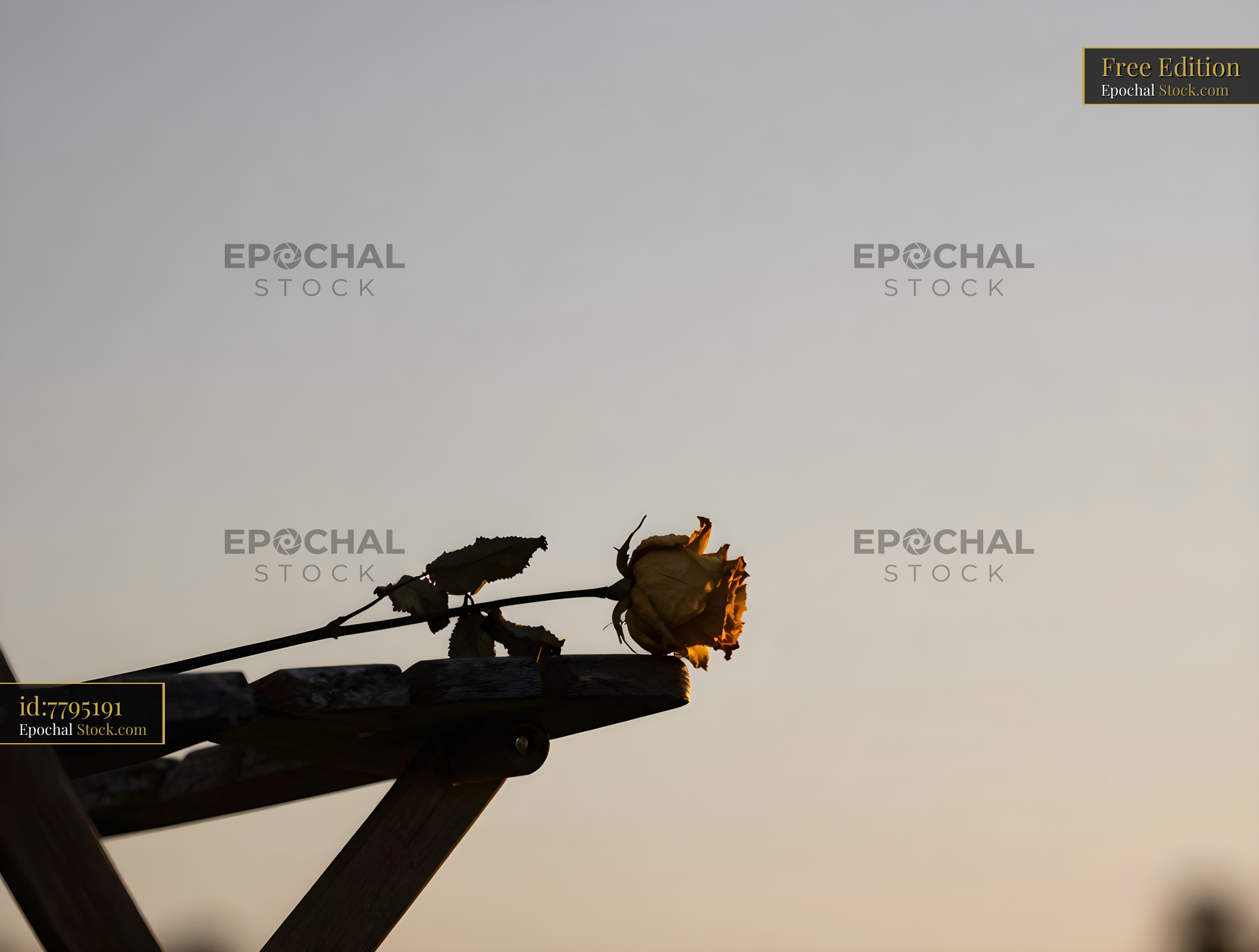 Dried flower placed on a wooden surface at sunset Free Premium Stock Image