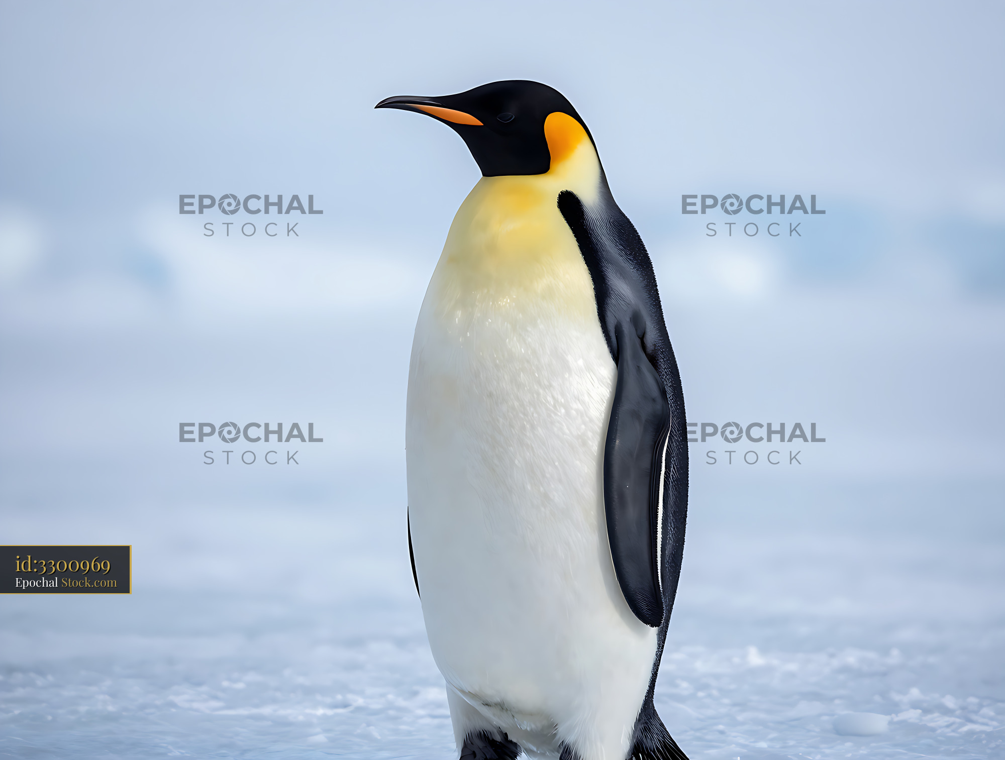 A majestic emperor penguin stands tall on the frozen icy plains of Antarctica, evoking themes of resilience, survival, and the serene beauty of the polar wilderness.