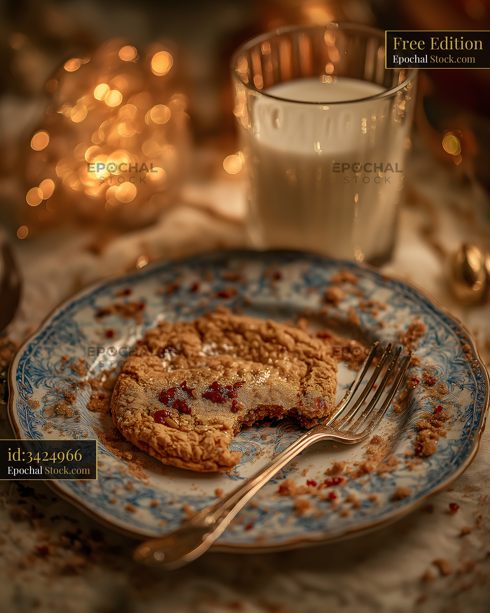 Enjoying cookie and milk at a cozy table with lights Free Premium Stock Photo