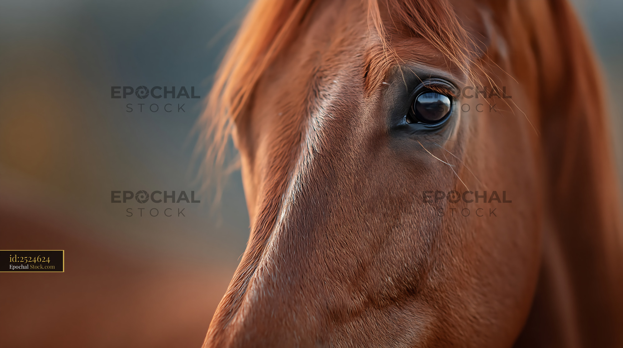 A detailed macro shot of a brown horse's eye, capturing the soulful gaze and fine textures, evoking a sense of calm and deep connection with nature.
